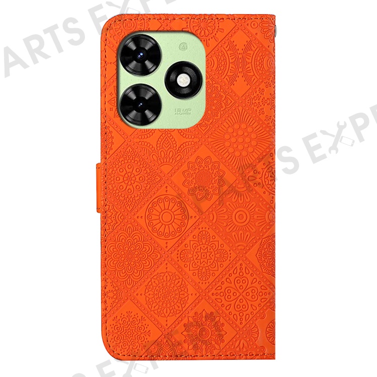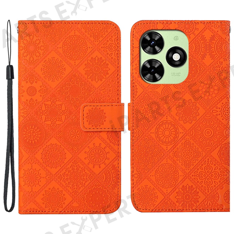 For TECNO Spark Go 2024 4G / Spark 20 / 20C / Pop 8 / Infinix Smart 8 4G / 8 Plus / 8 Pro 4G Case Leather Case Ethnic Style Wallet Phone Cover with Strap - Orange