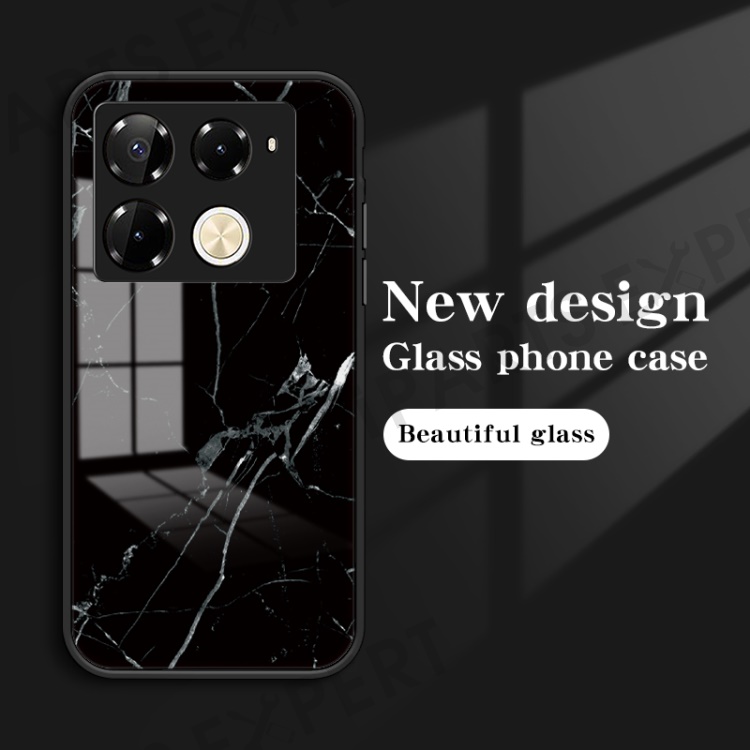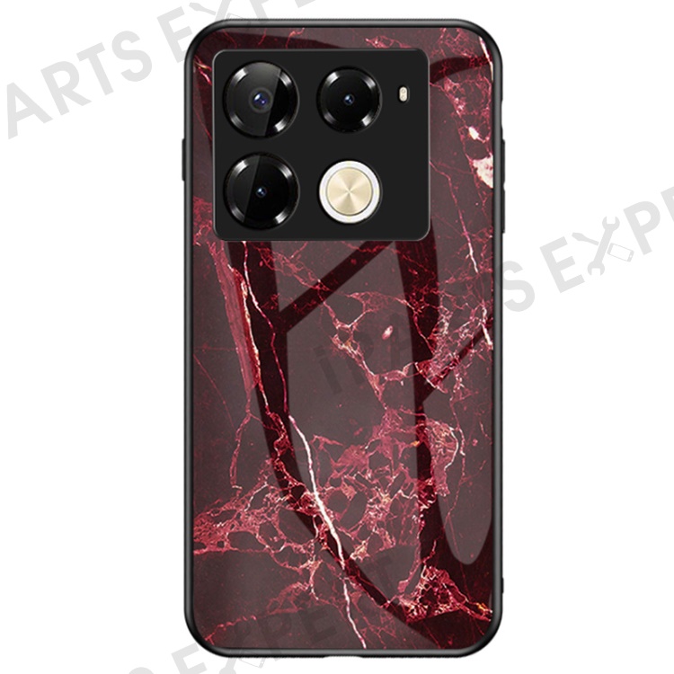 For Infinix Note 40 Pro 4G Case Marble Pattern Anti-Scratch Tempered Glass Phone Cover - Blood Red Marble