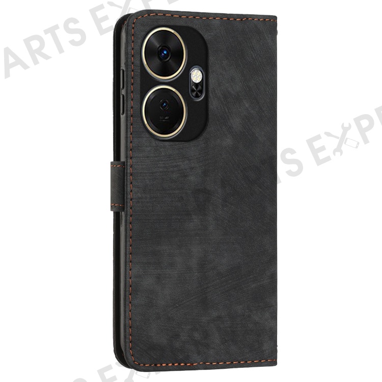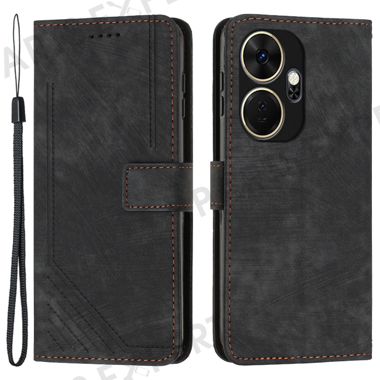 For itel P55+ Phone Case Lines Imprinted PU Leather Wallet Stand Cover - Black
