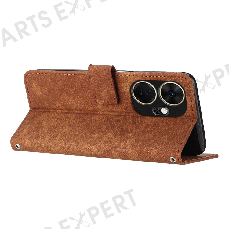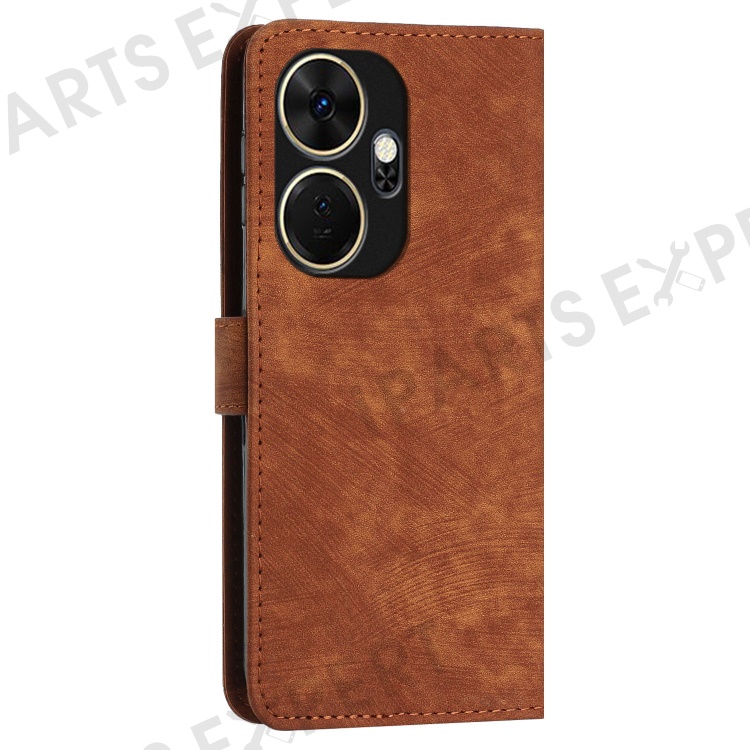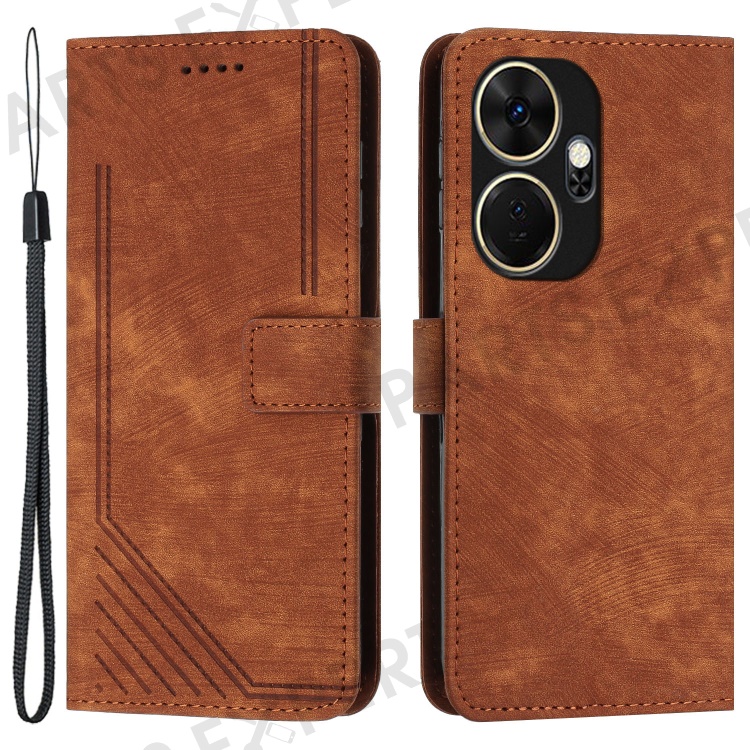 For itel P55+ Phone Case Lines Imprinted PU Leather Wallet Stand Cover - Brown