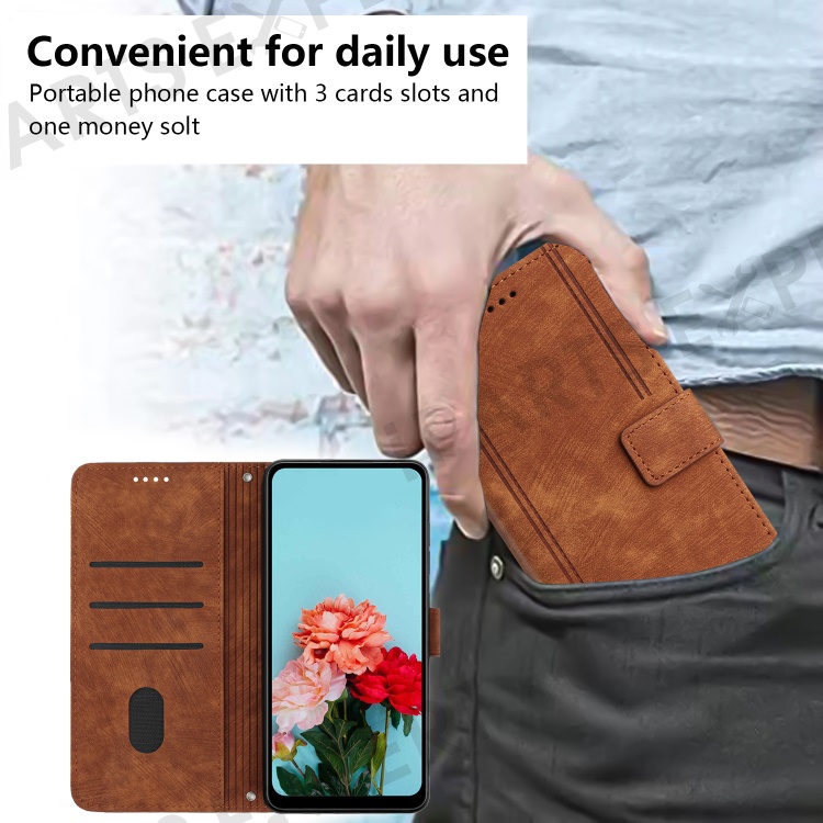 - 【Premium Material】 Made from high-quality PU leather and TPU, this wallet phone case with lines imprinting decor, offers a skin-touch feel and enhanced durability, protecting your phone from everyday wear and tear