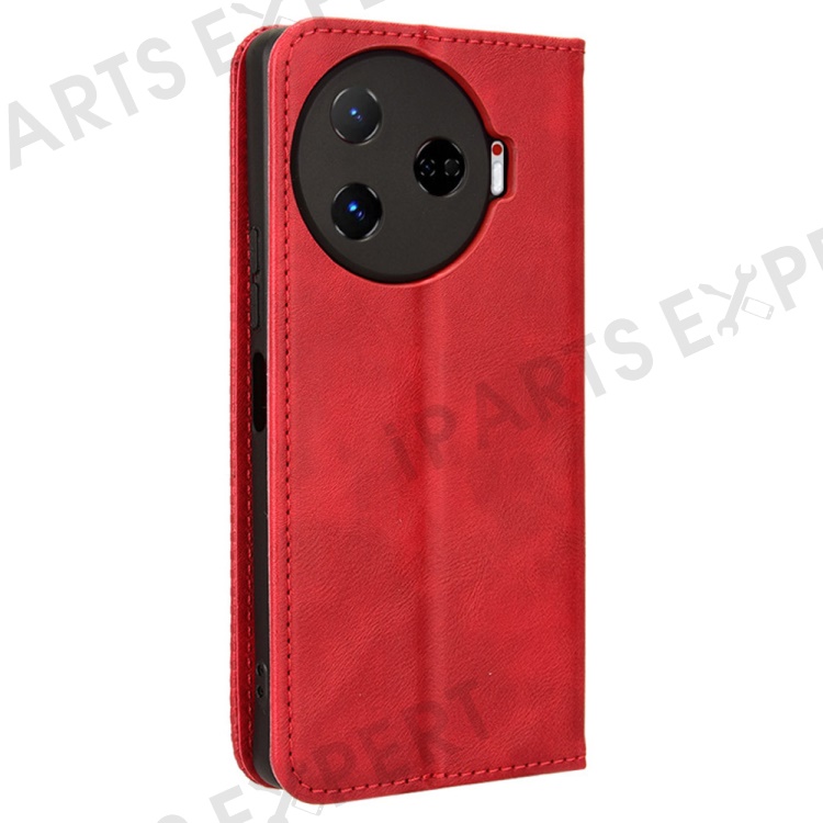 For TECNO Camon 30 Pro 5G / CL8 Case Stand Wallet Retro Leather Phone Cover - Red