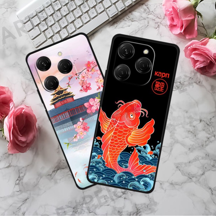 For TECNO Spark 20 Pro Case TPU Phone Cover Art Aesthetic Pattern - Carp Surfing