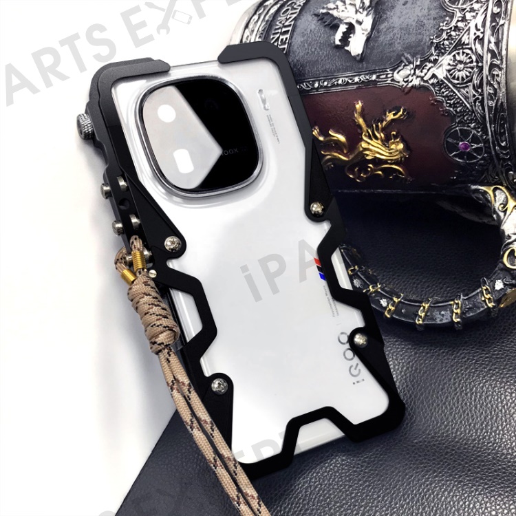 For vivo iQOO 12 5G / Neo5 / Neo5 S / Neo6 5G / Neo6 SE 5G / Neo9 5G / Neo9 Pro 5G Phone Case Aluminium Alloy Shockproof Cover with Strap - Black