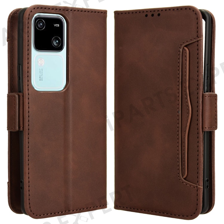 For vivo S18 5G / S18 Pro 5G / V30 5G / V30 Pro 5G Case PU Leather Stand Multiple Card Slots Phone Cover - Brown