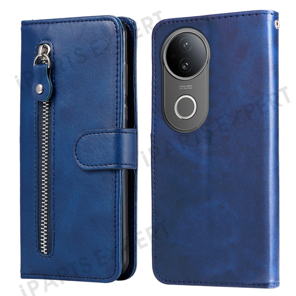 For vivo S20 5G Case Zipper Wallet Calf Texture PU Leather Phone Cover - Blue