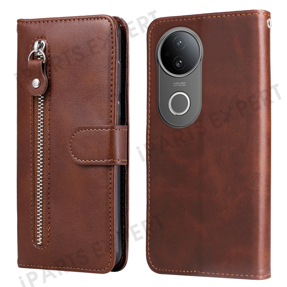For vivo S20 5G Case Zipper Wallet Calf Texture PU Leather Phone Cover - Brown