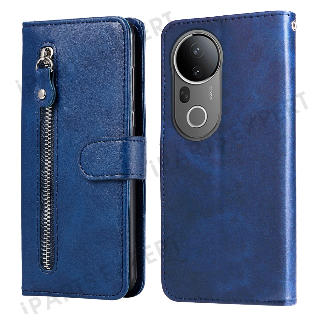 For vivo S20 Pro 5G Case Zipper Wallet Calf Texture PU Leather Phone Cover - Blue
