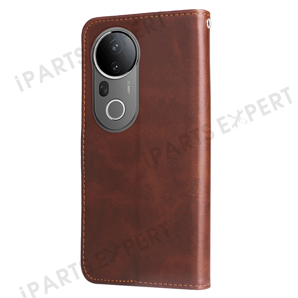 For vivo S20 Pro 5G Case Zipper Wallet Calf Texture PU Leather Phone Cover - Brown