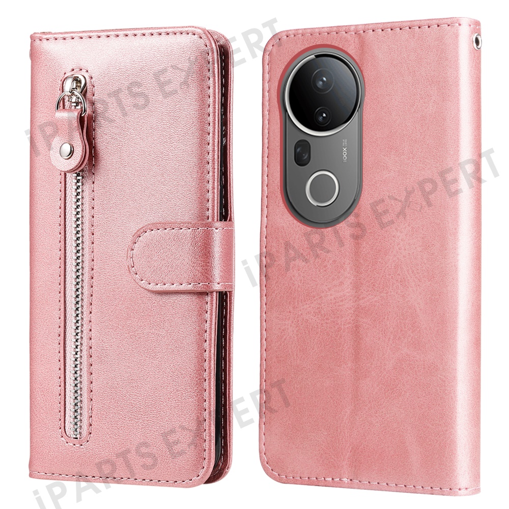 For vivo S20 Pro 5G Case Zipper Wallet Calf Texture PU Leather Phone Cover - Pink