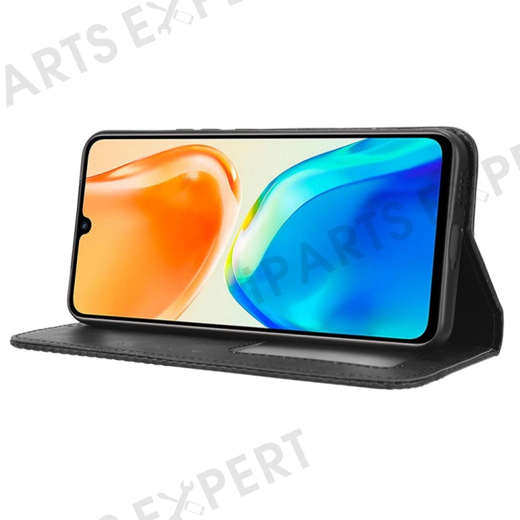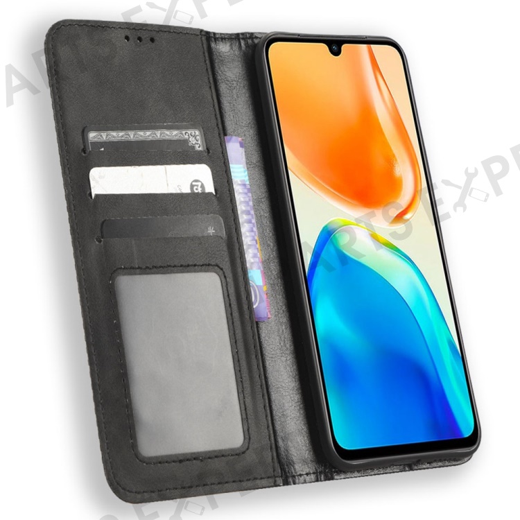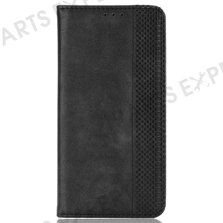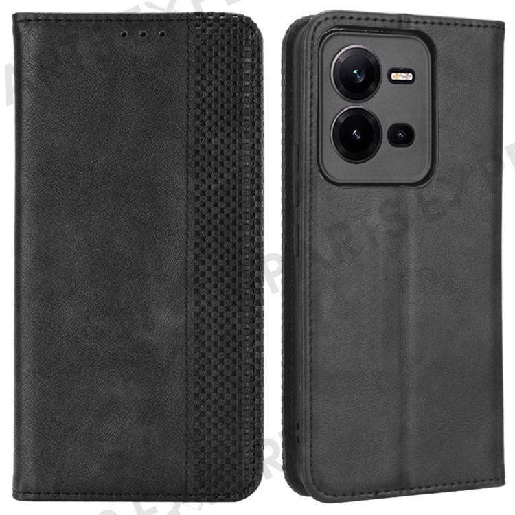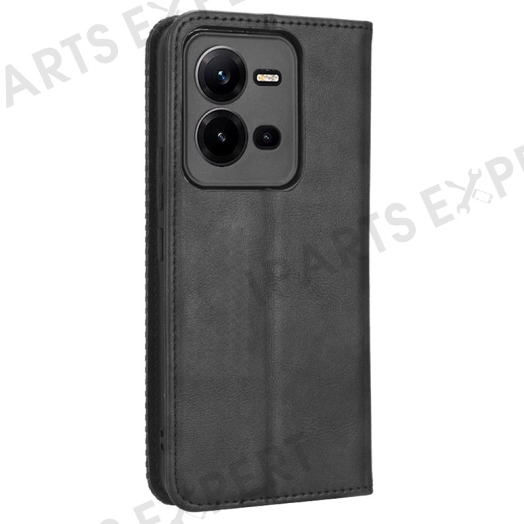 For vivo V25 5G Magnetic Auto-absorbed Retro PU Leather Case Imprint Pattern Full Protection Phone Wallet Stand Cover - Black