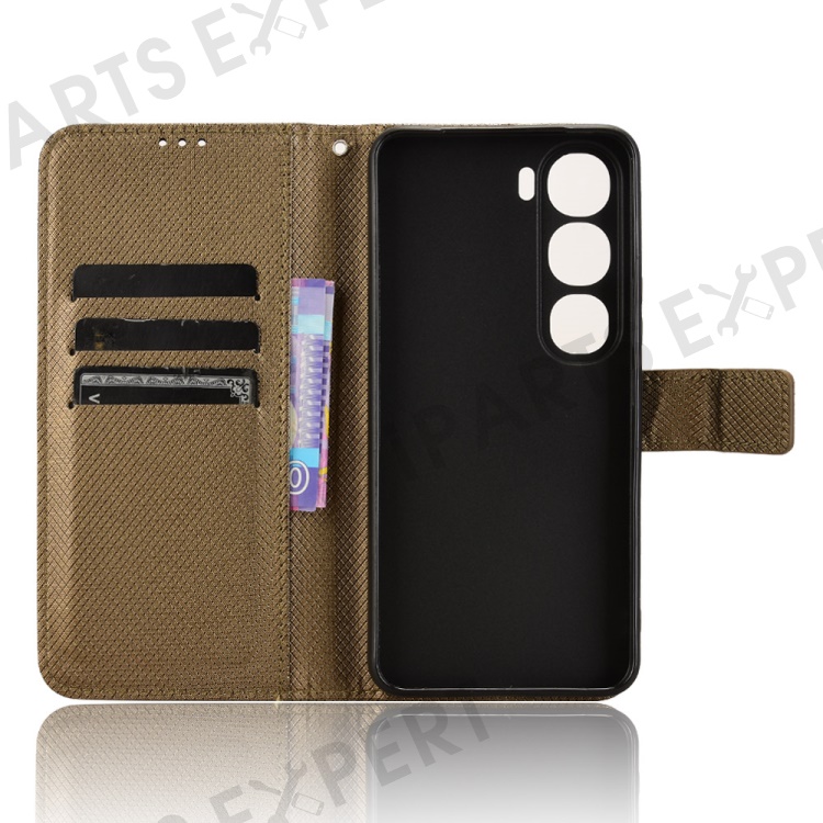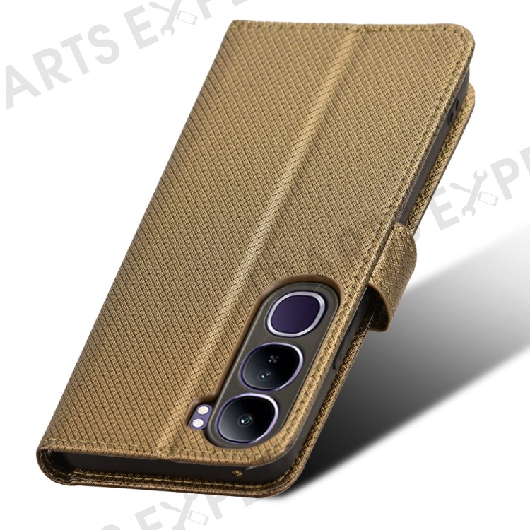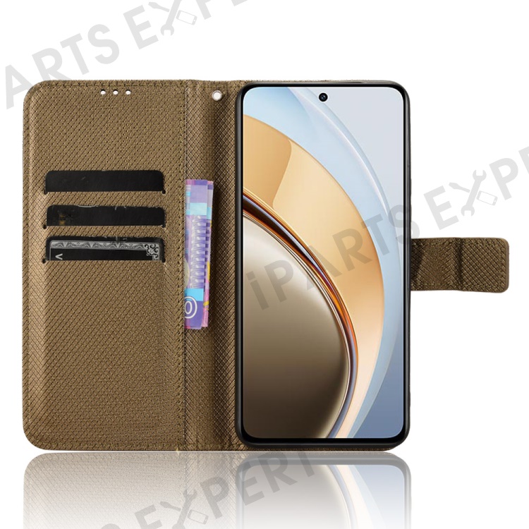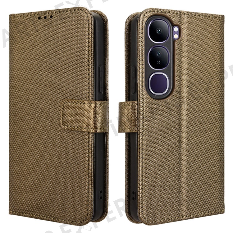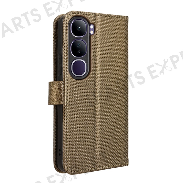 For vivo V40 Lite (Indonesia) 4G / 5G Case PU Leather Diamond Texture Wallet Phone Cover - Brown