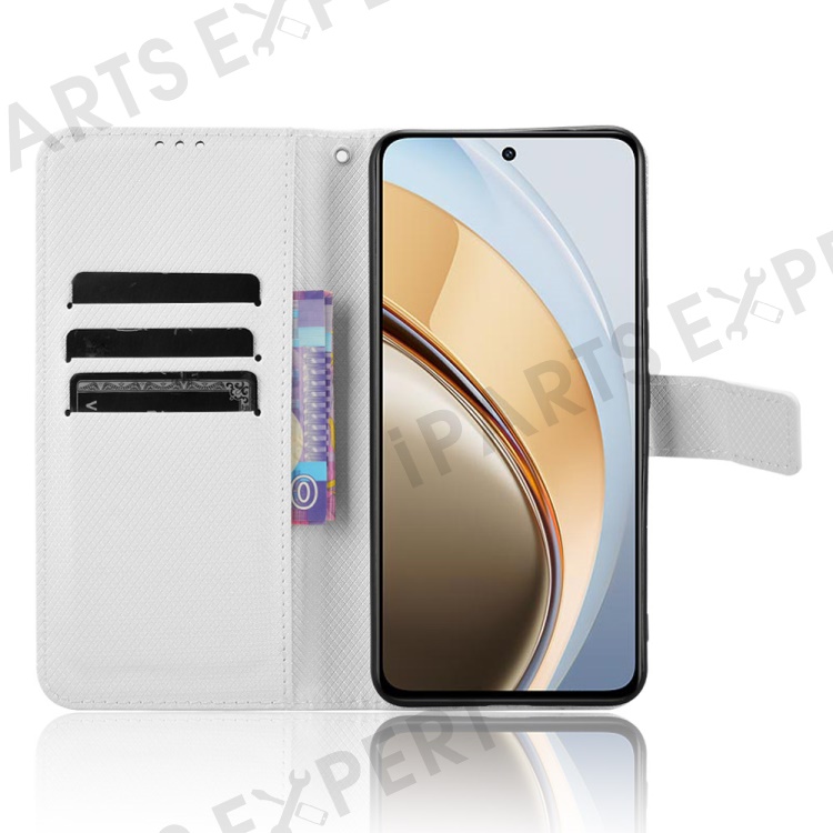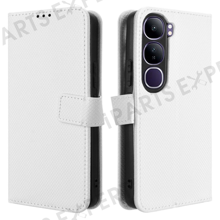 For vivo V40 Lite (Indonesia) 4G / 5G Case PU Leather Diamond Texture Wallet Phone Cover - White