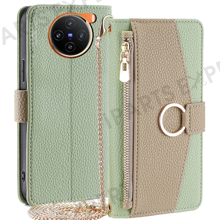 For vivo X100 5G Wallet Case with Card Holder PU Leather Phone Cover Crossbody Bag Purse Style - Green