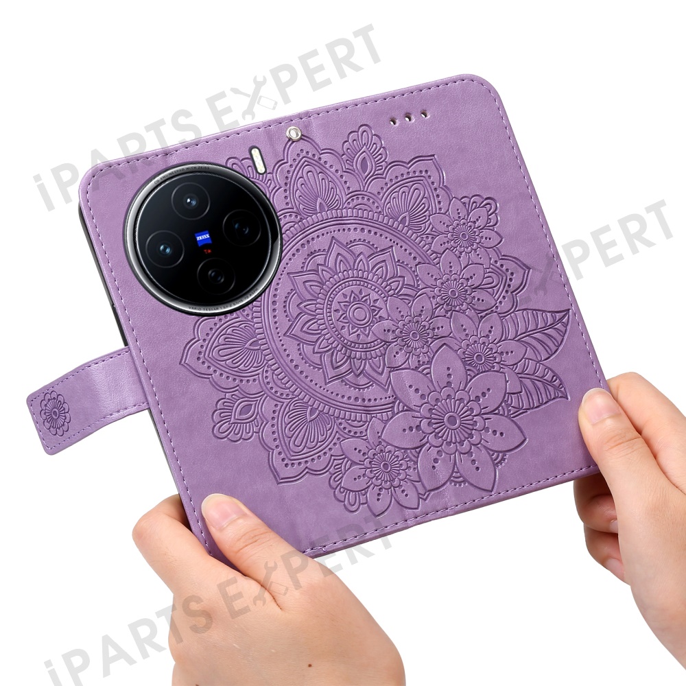 For vivo X200 5G Case Floral Pattern PU Leather Wallet Stand Phone Cover - Purple