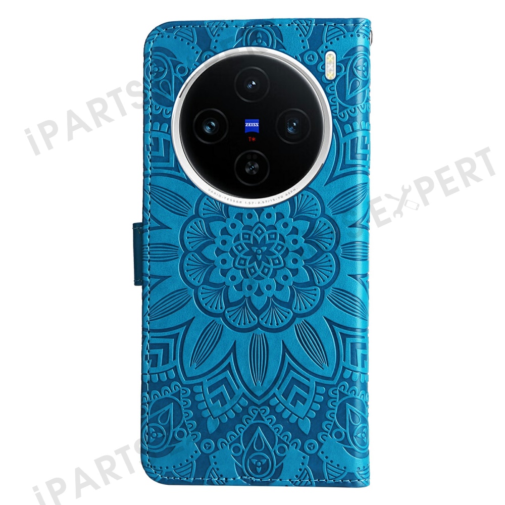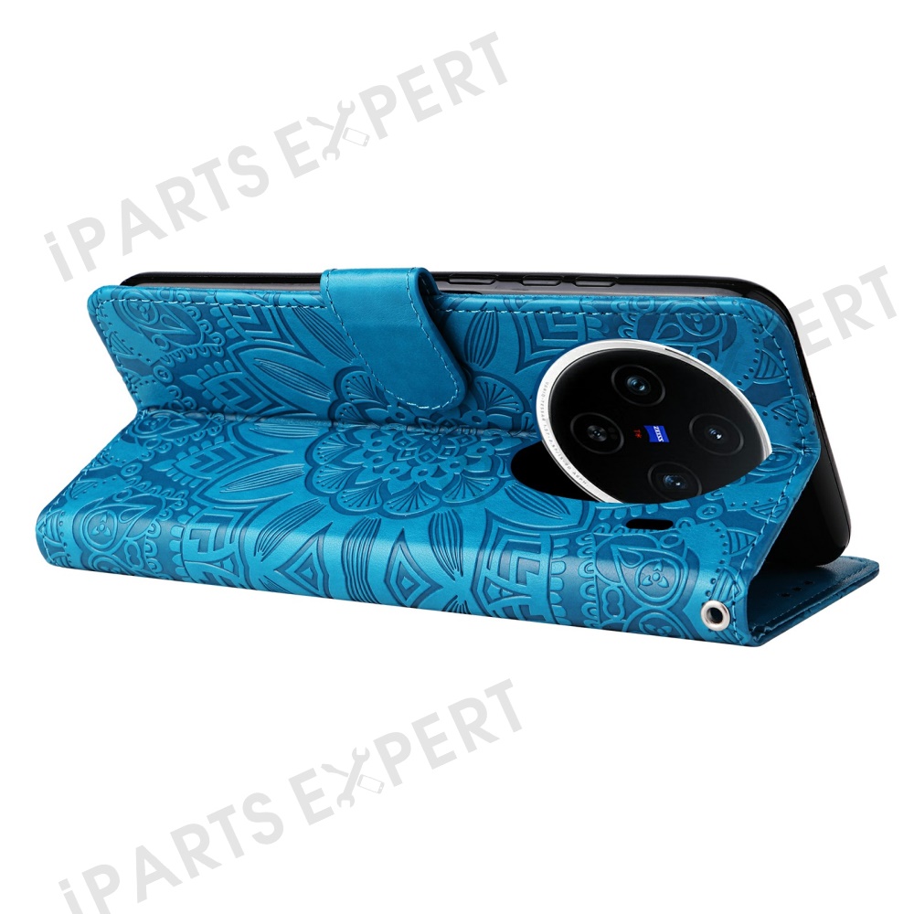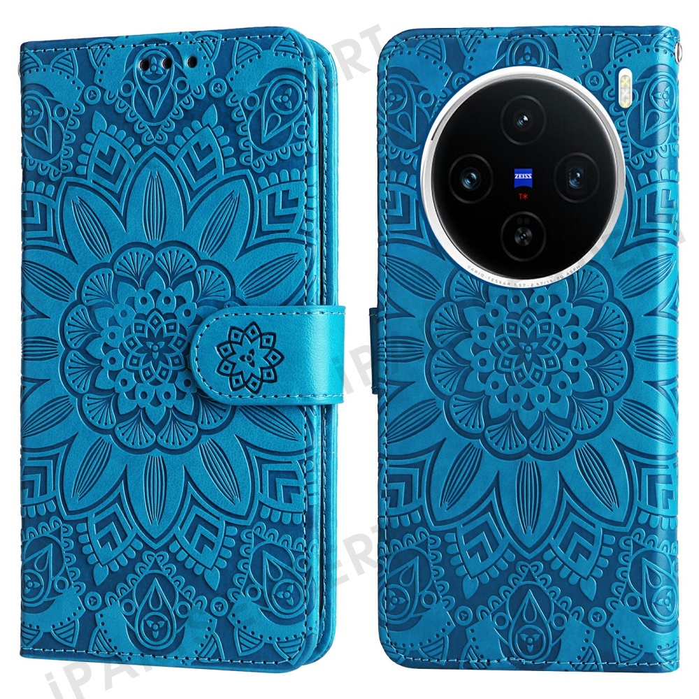 For vivo X200 5G Case Sunflower Imprint Leather Wallet Phone Cover - Blue