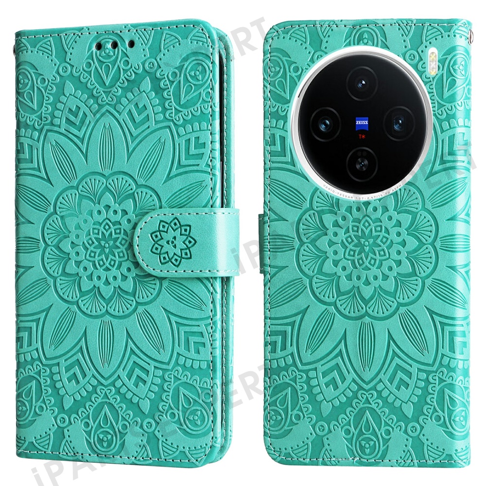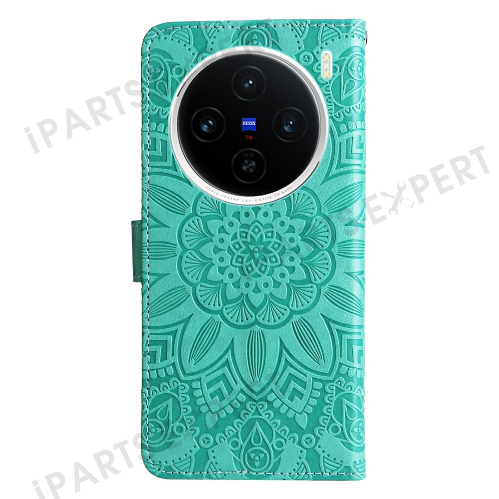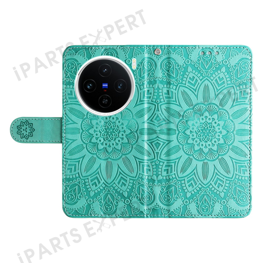 For vivo X200 5G Case Sunflower Imprint Leather Wallet Phone Cover - Green