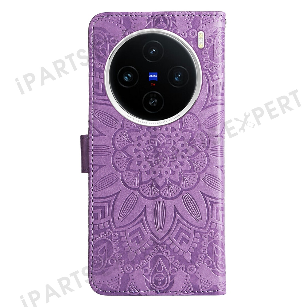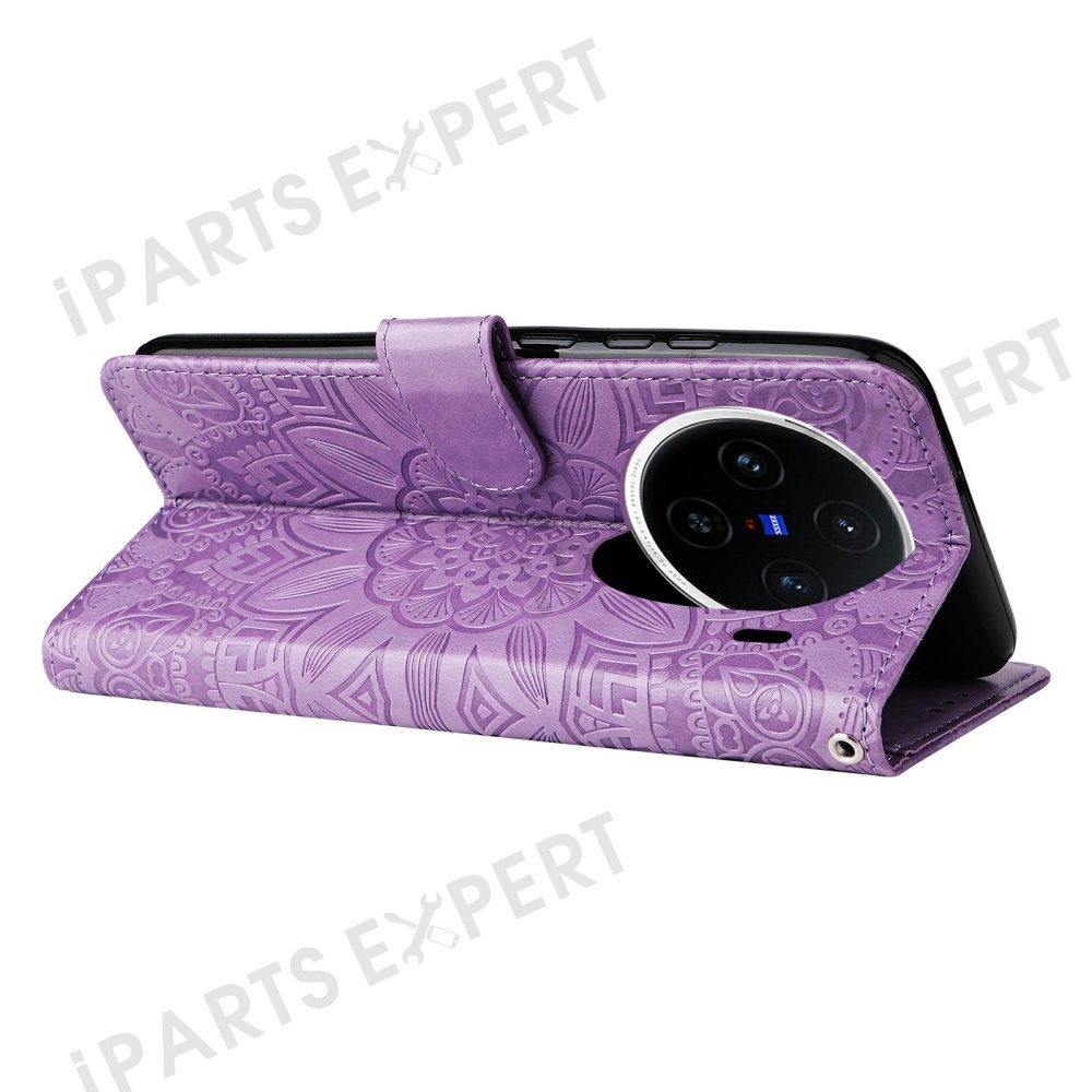 For vivo X200 5G Case Sunflower Imprint Leather Wallet Phone Cover - Purple