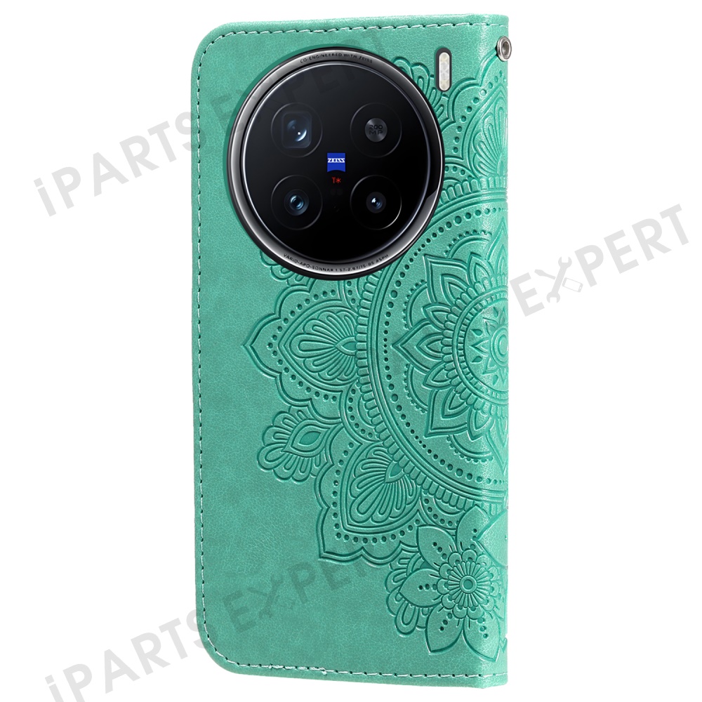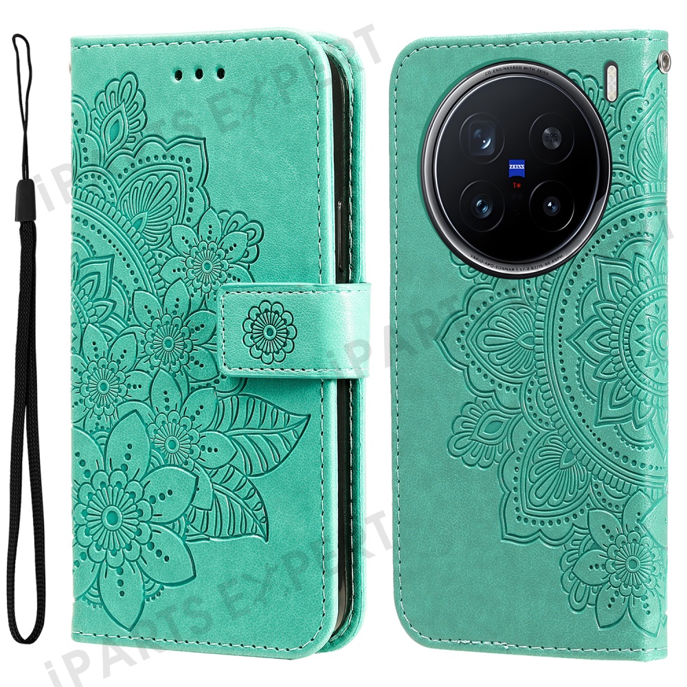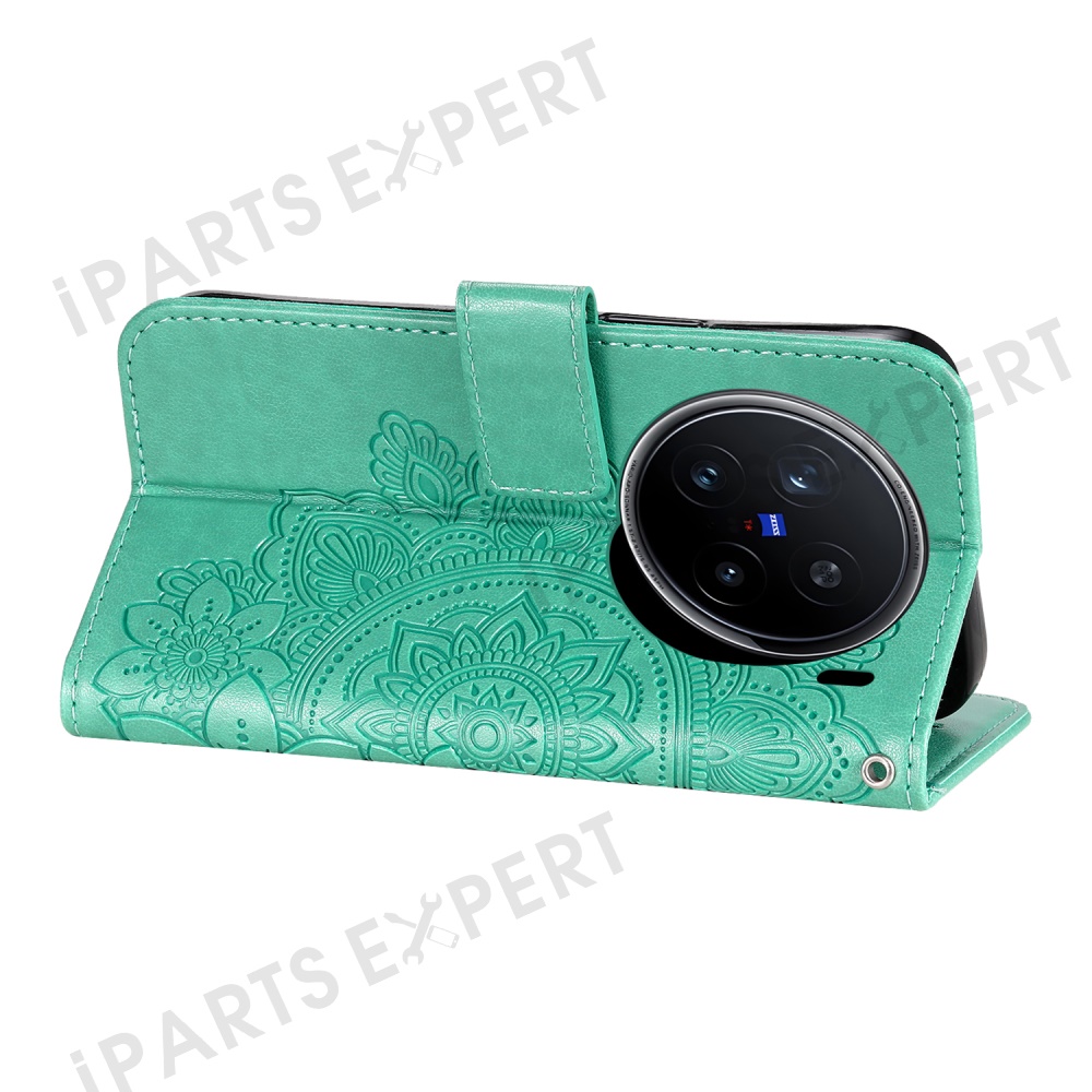 For vivo X200 Pro 5G Case Floral Pattern PU Leather Wallet Stand Phone Cover - Green