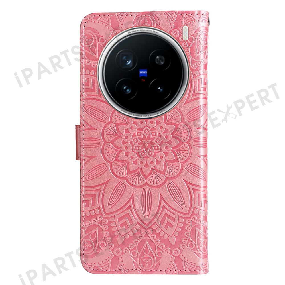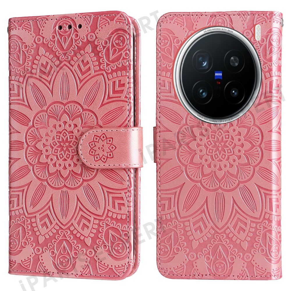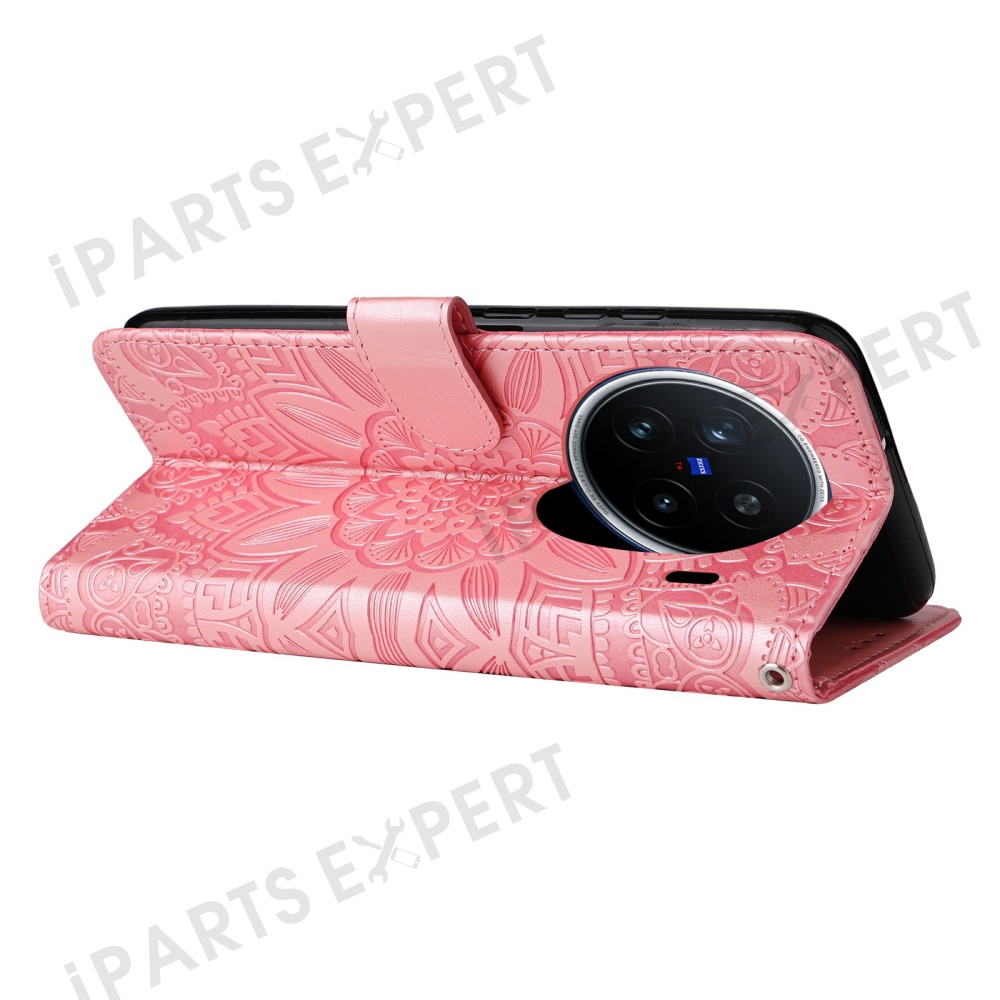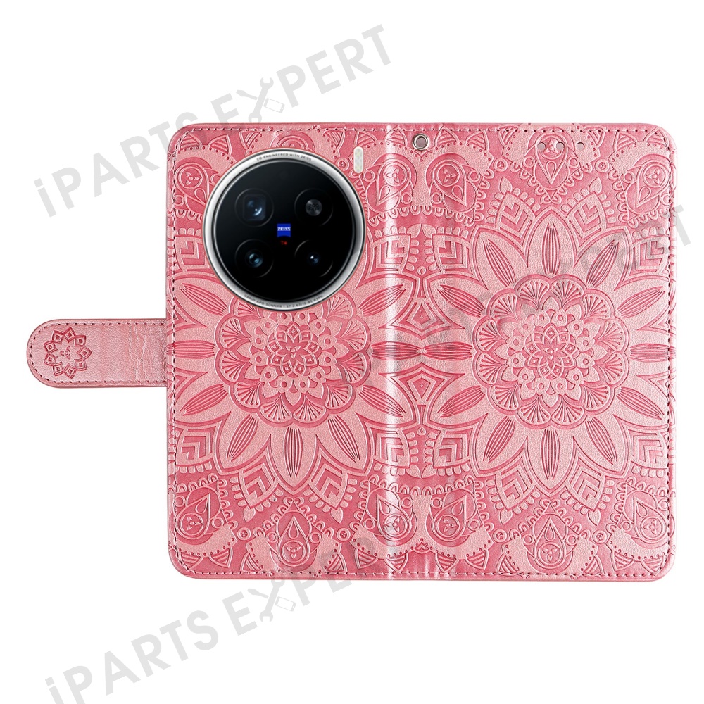 For vivo X200 Pro 5G Case Sunflower Imprint Leather Wallet Phone Cover - Pink