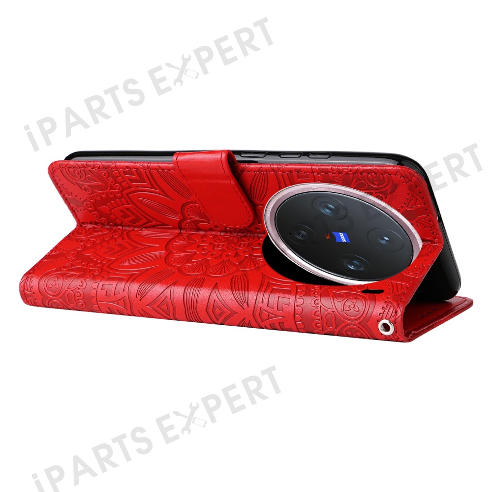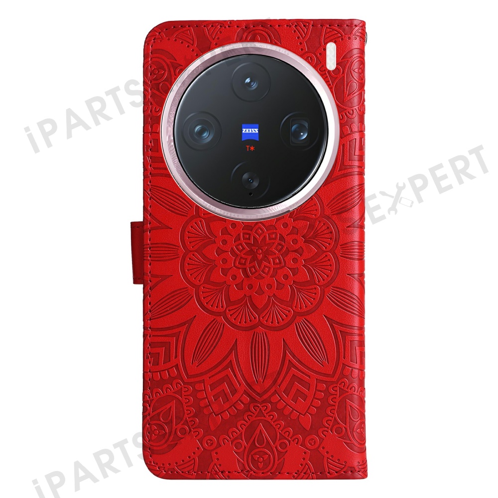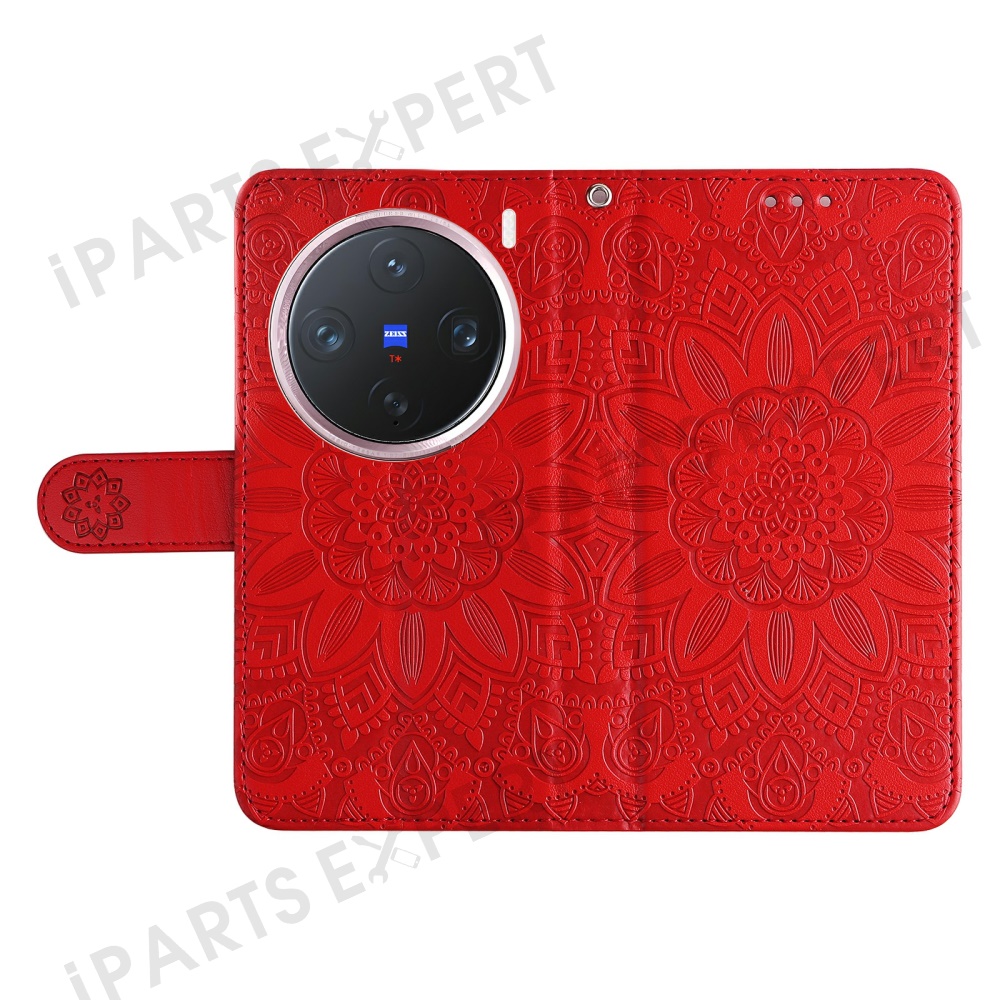 For vivo X200 Pro mini 5G Case Sunflower Imprint Leather Wallet Phone Cover - Red