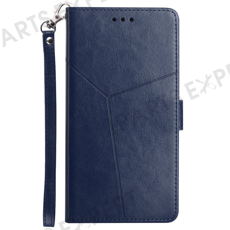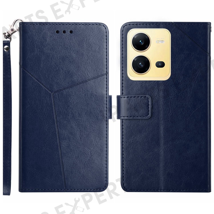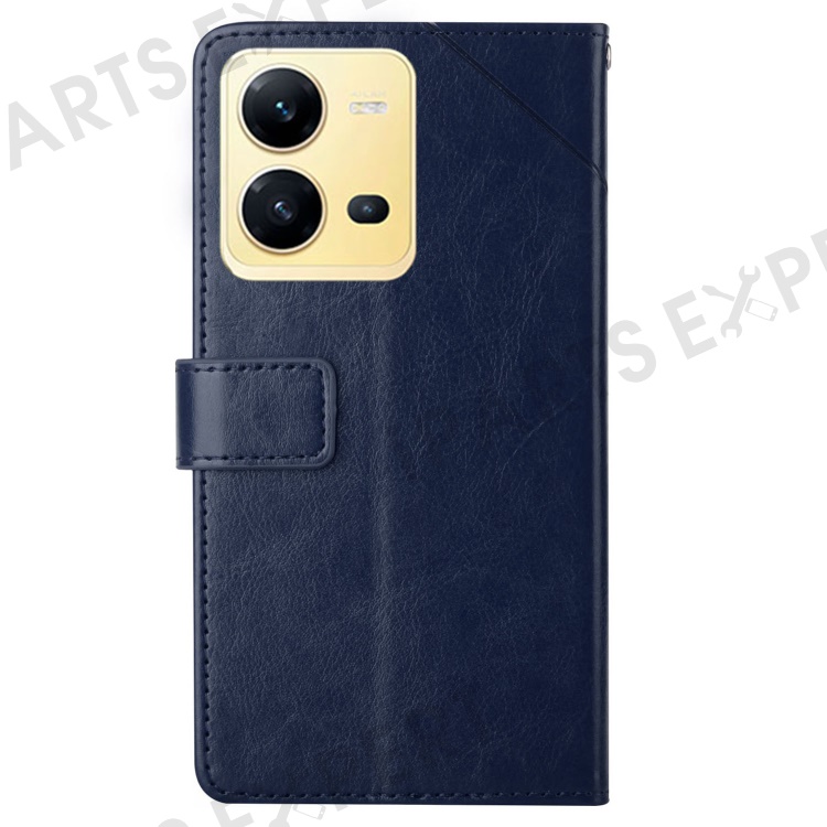 For vivo X80 Lite 5G / V25 5G HT01 PU Leather Book Wallet Case Imprinted Y-Shaped Lines Magnetic Folio Flip Stand Cover with Strap - Blue