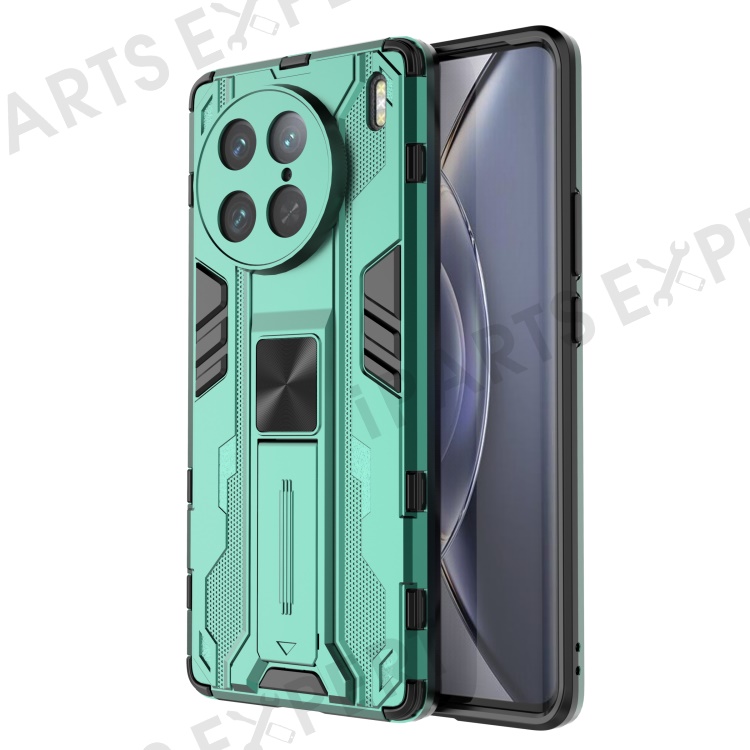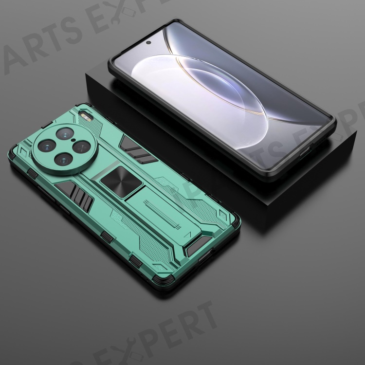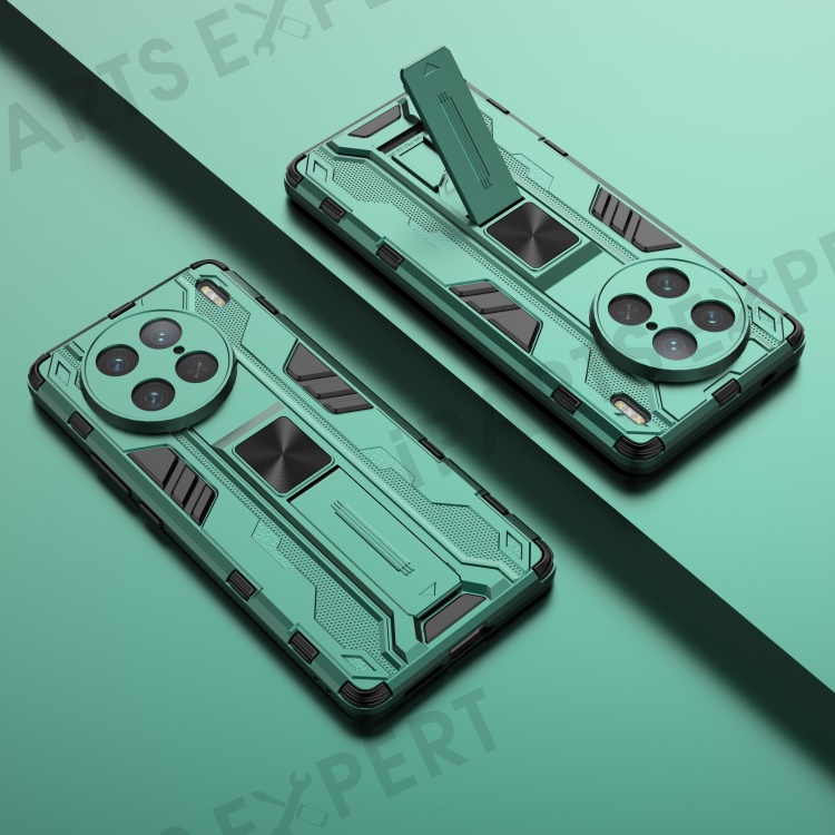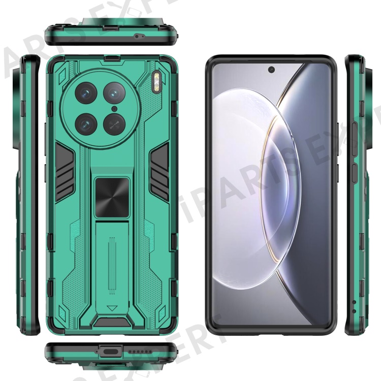 For vivo X90 Pro 5G Kickstand Cell Phone Case Hard PC Soft TPU Anti-drop Back Cover - Green