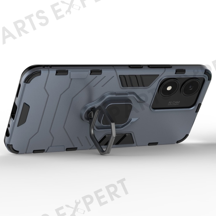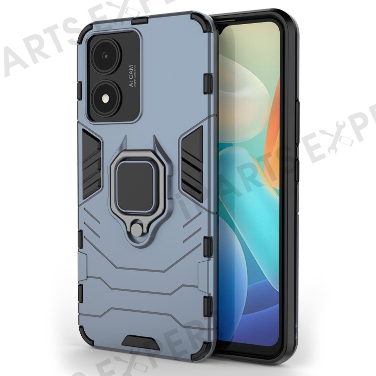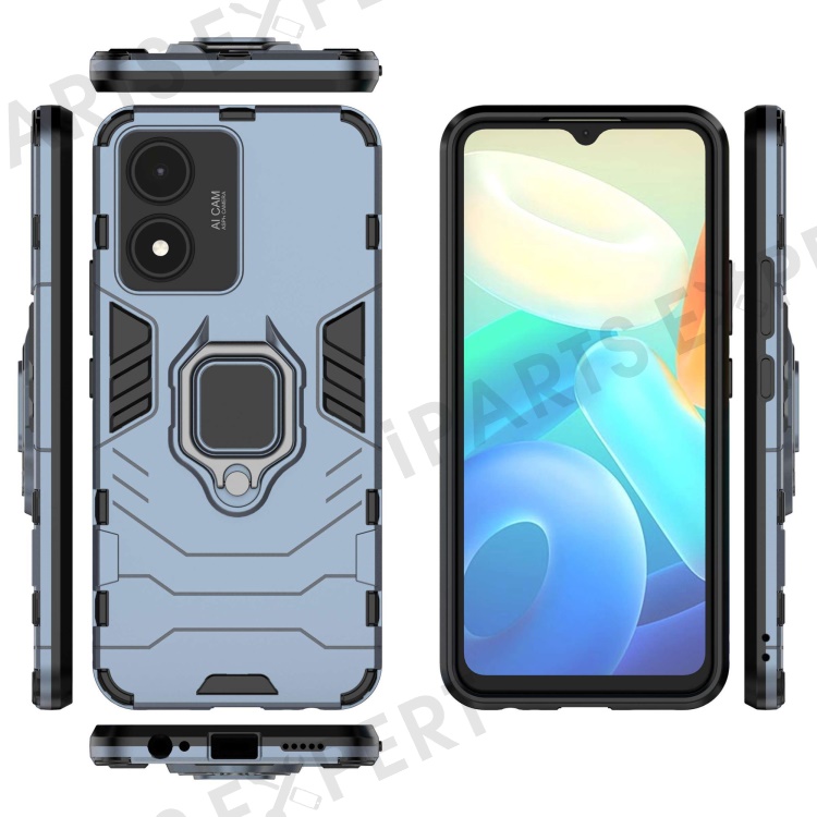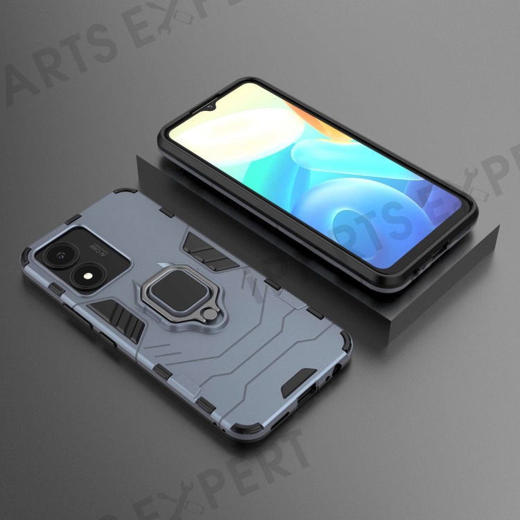 For vivo Y02s 4G Phone Case Ring Kickstand Hybrid Hard PC Soft TPU Shockproof Protective Cover - Blue
