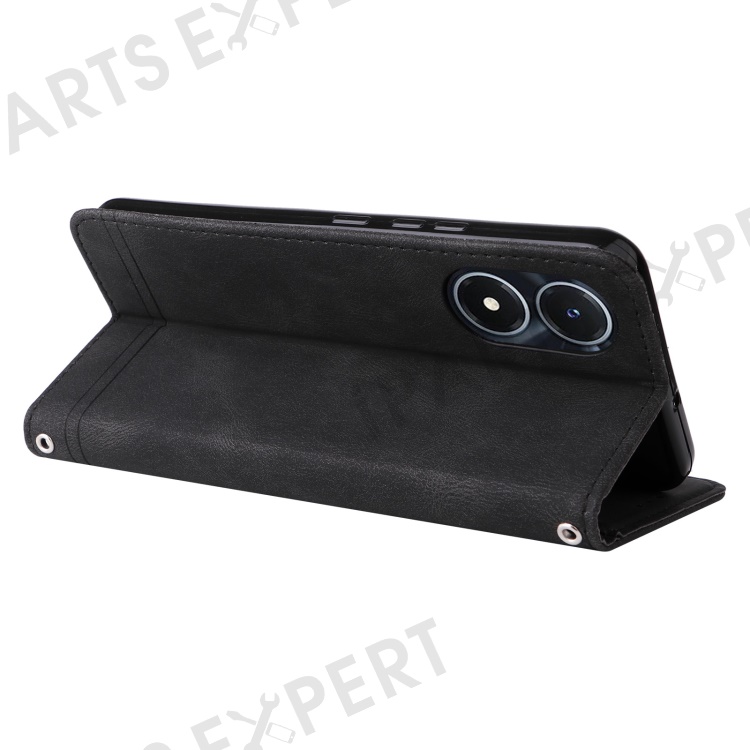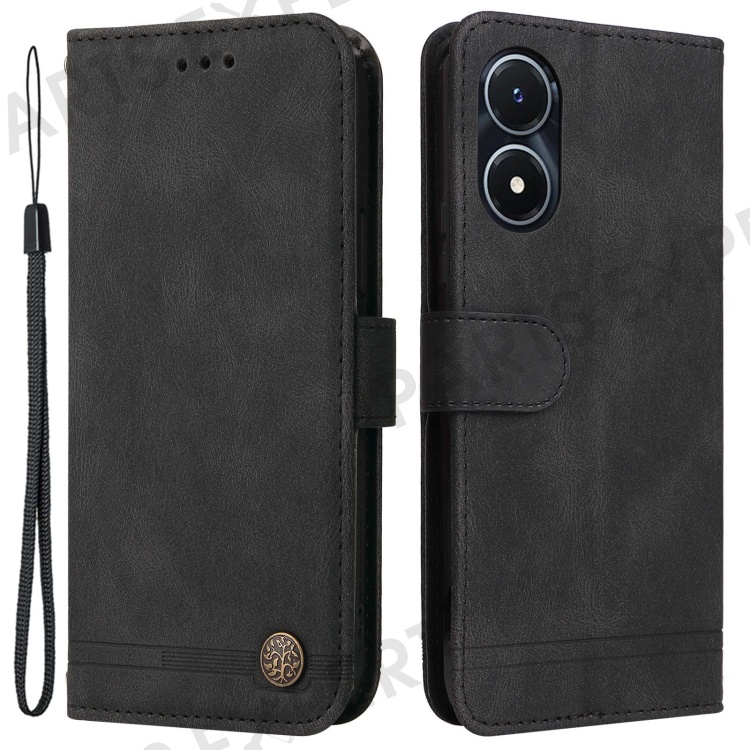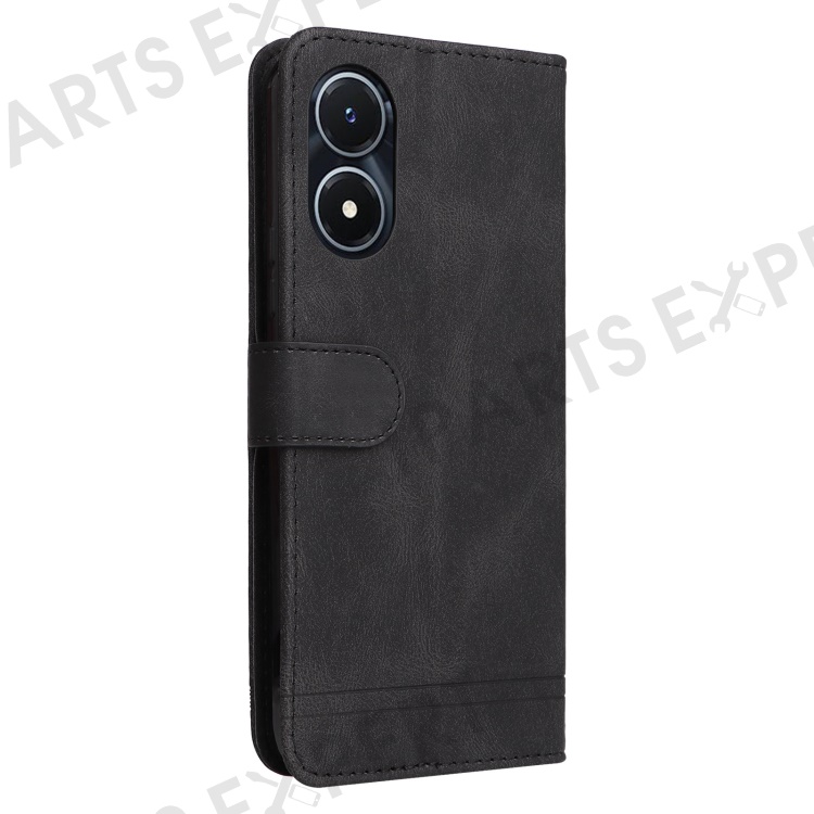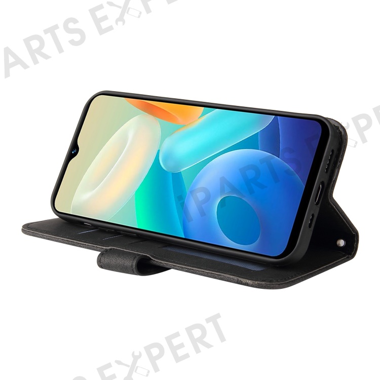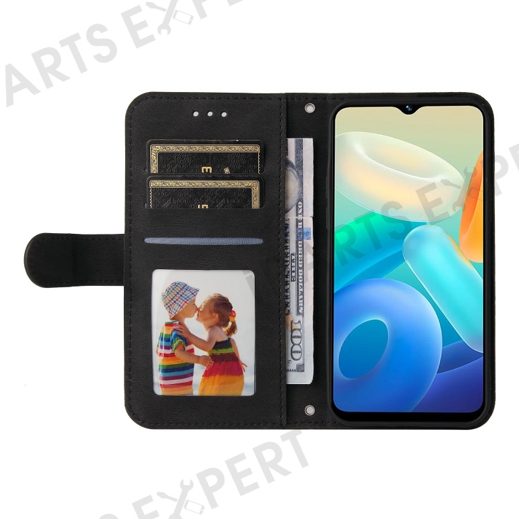 For vivo Y02s 4G / Y16 4G Leather Wallet Cases Skin Touch Phone Cover Stand with Strap - Black
