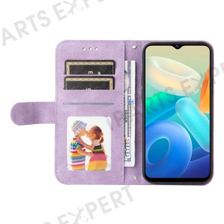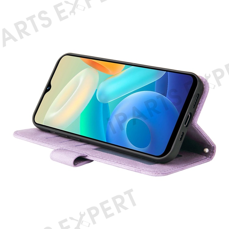 For vivo Y02s 4G / Y16 4G Leather Wallet Cases Skin Touch Phone Cover Stand with Strap - Purple