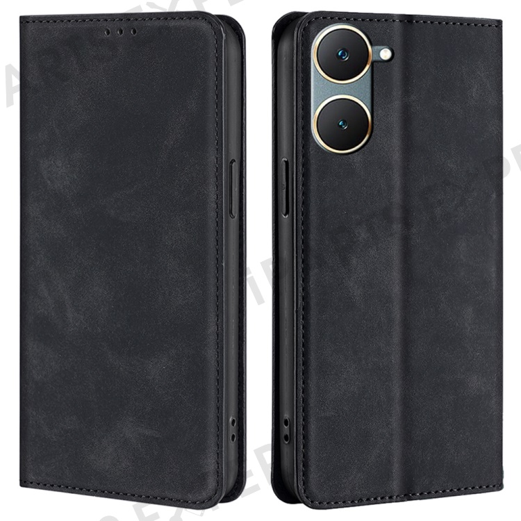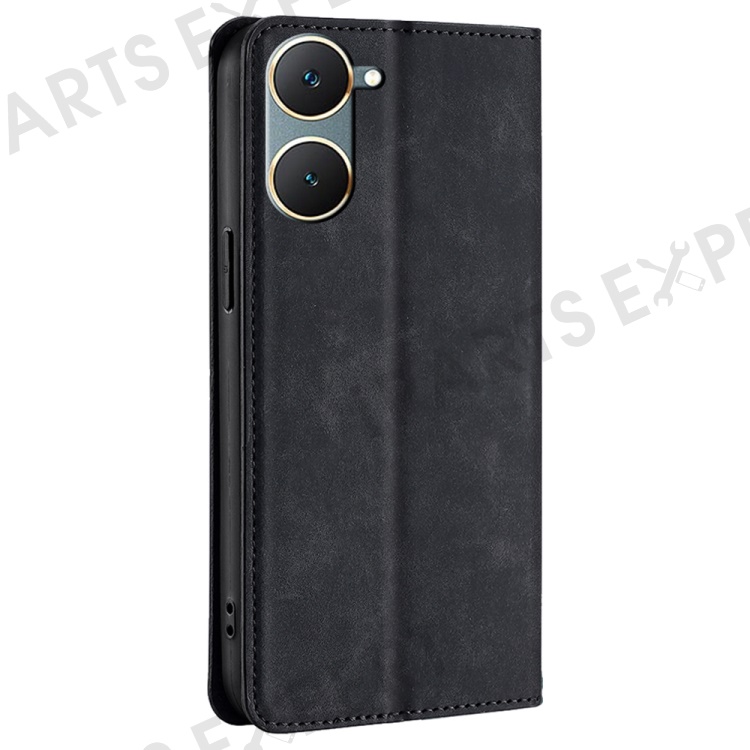 For vivo Y03 Case PU Leather Magnetic Auto-Absorbed Cover with Card Holder - Black