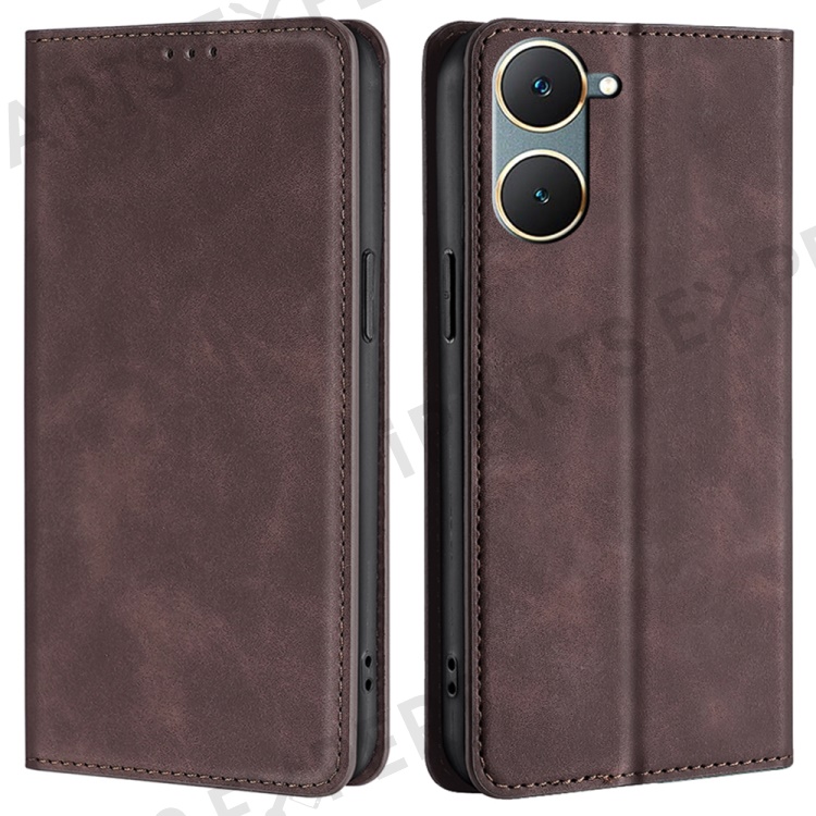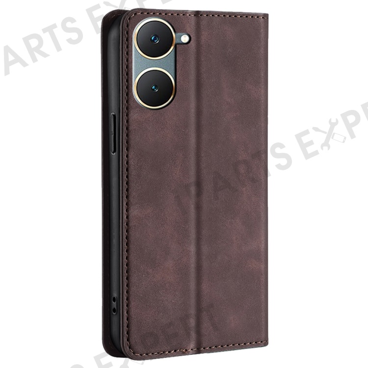 For vivo Y03 Case PU Leather Magnetic Auto-absorbed Cover with Card Holder - Dark Brown