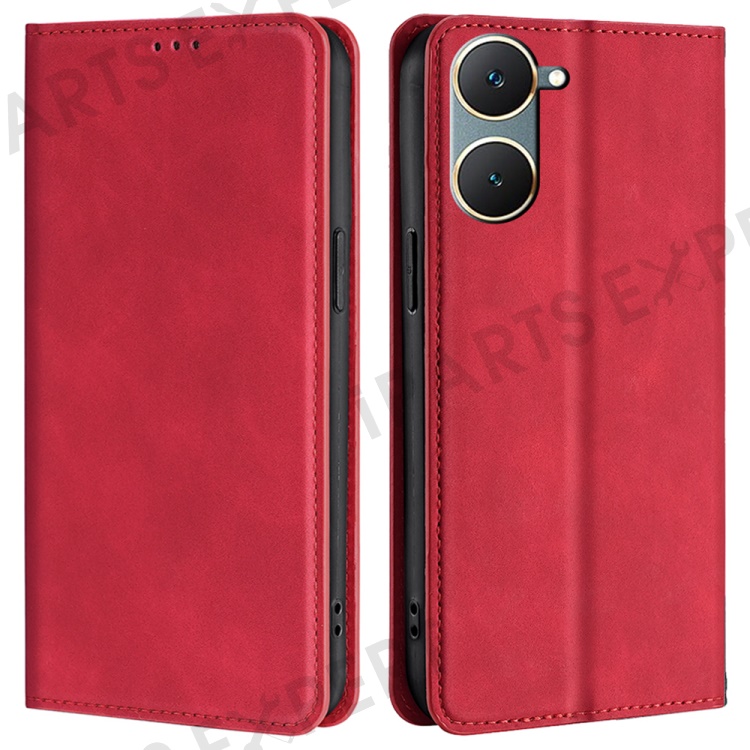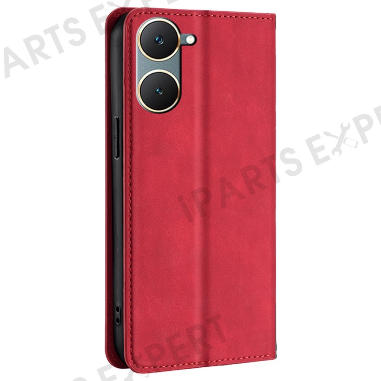 For vivo Y03 Case PU Leather Magnetic Auto-absorbed Cover with Card Holder - Red