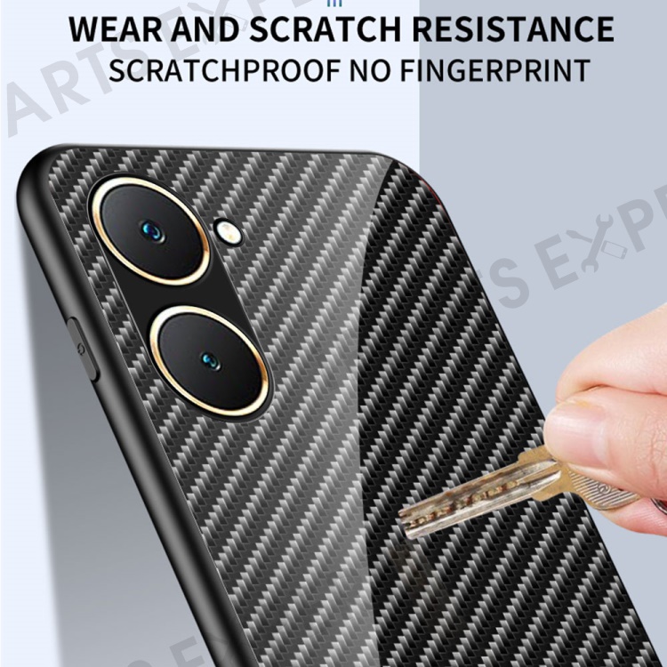 For vivo Y03 Tempered Glass Case Carbon Fiber Texture Anti-Drop Phone Cover - Black Fiber