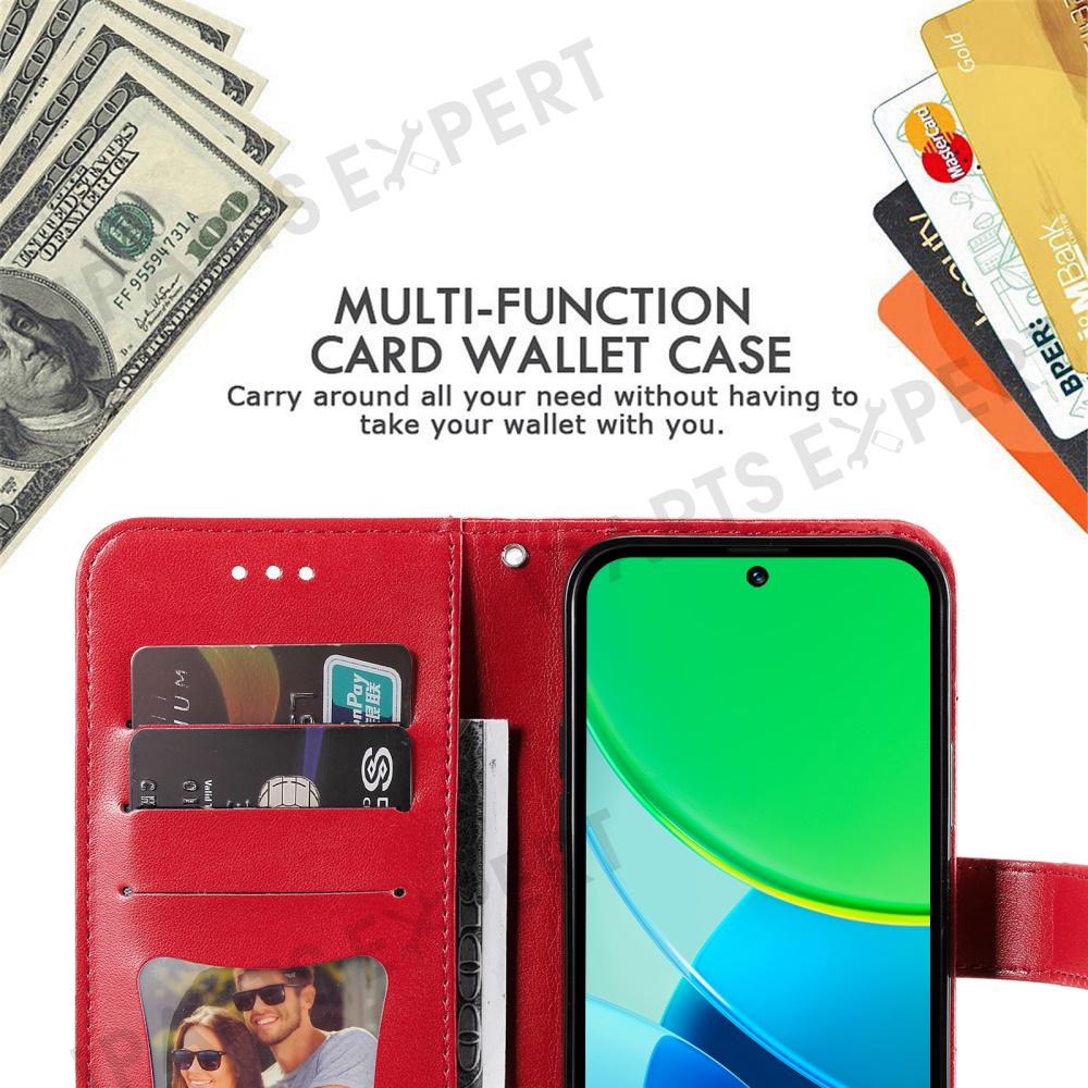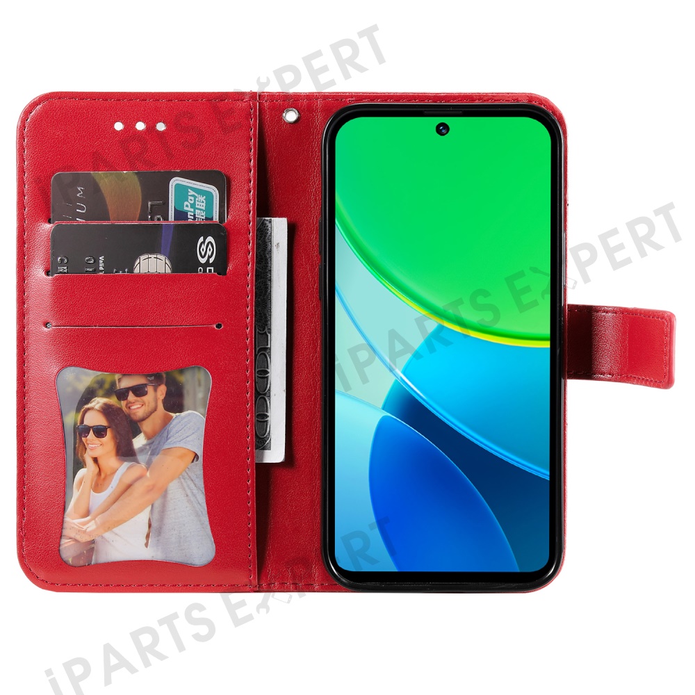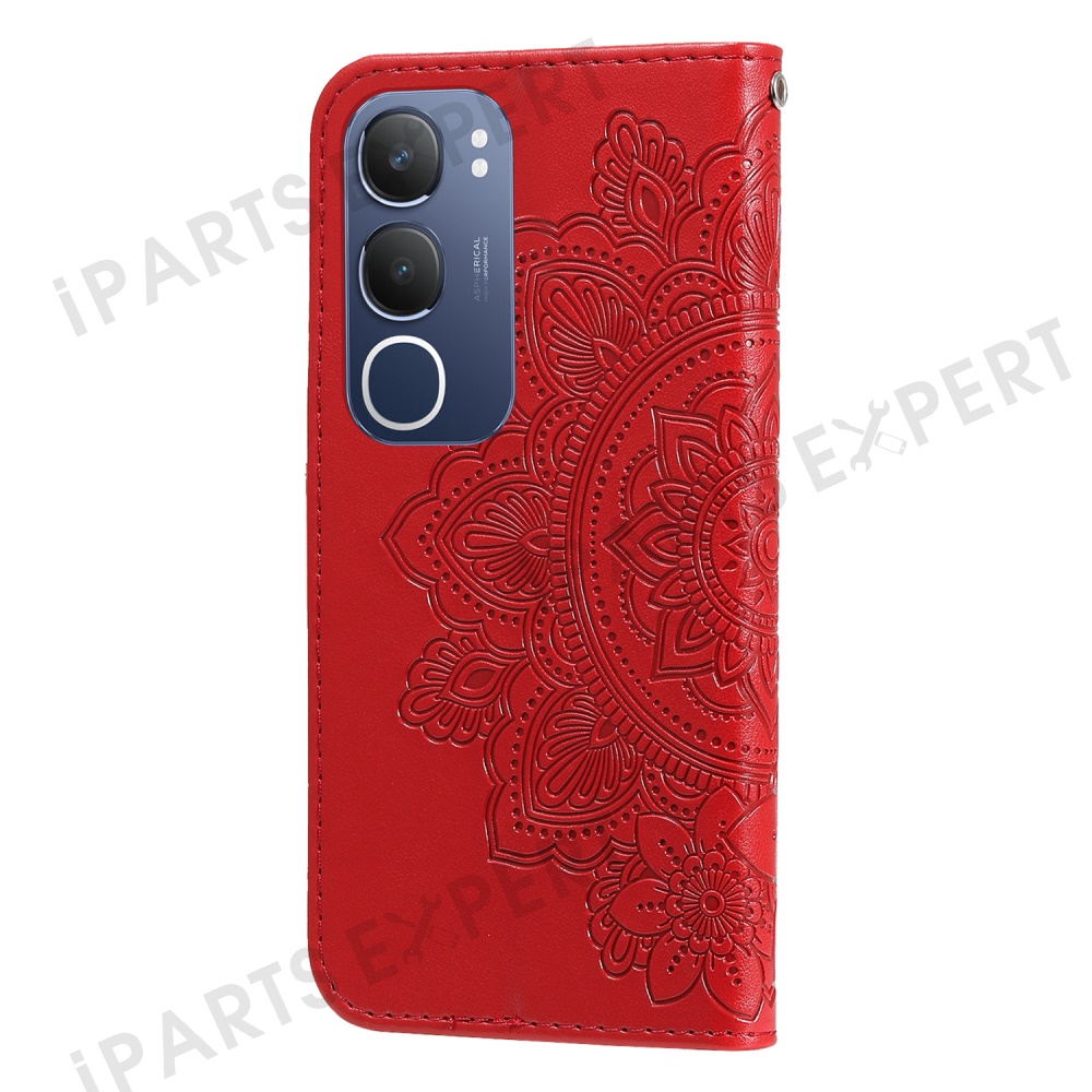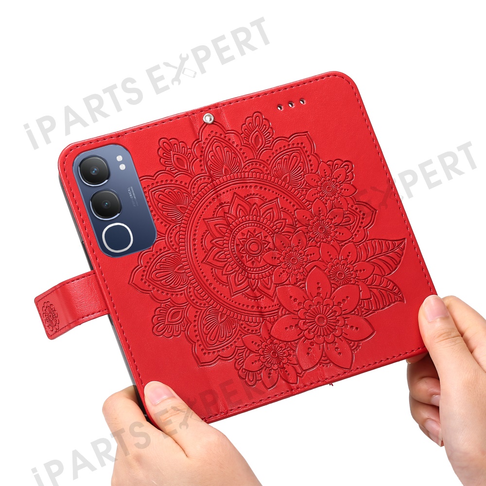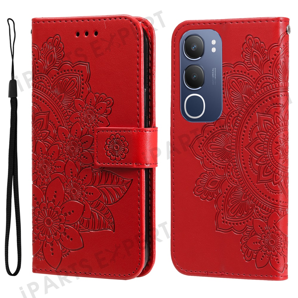 For vivo Y29 5G / Y19s 4G Case Floral Pattern PU Leather Wallet Stand Phone Cover - Red