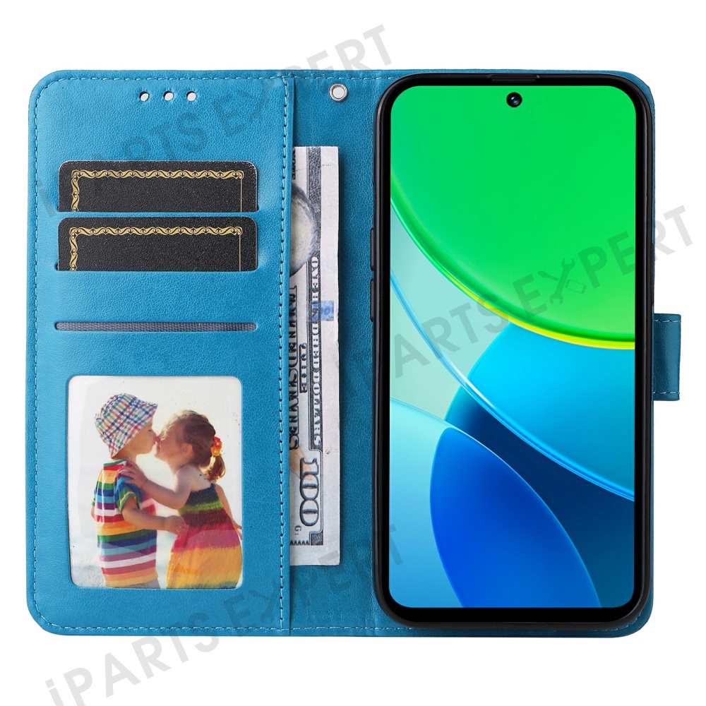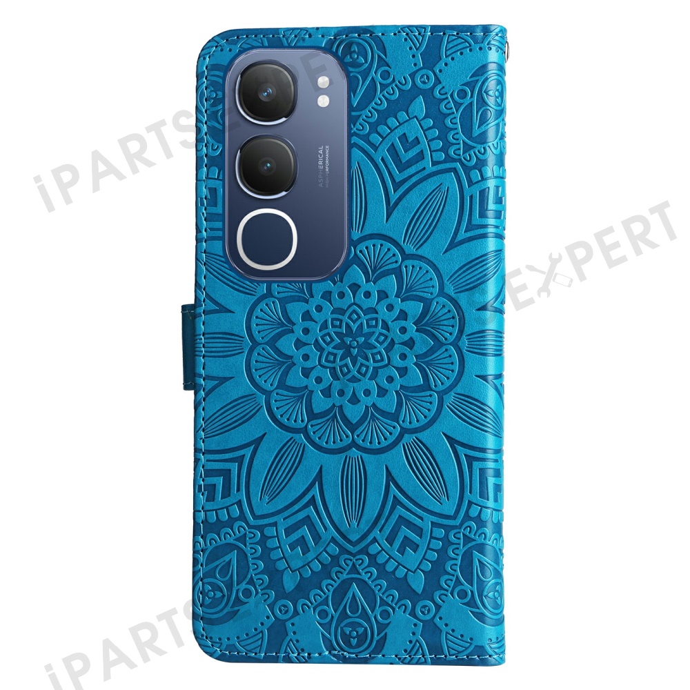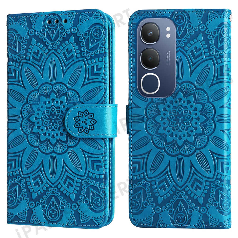 For vivo Y29 5G / Y19s 4G Case Sunflower Imprint Leather Wallet Phone Cover - Blue