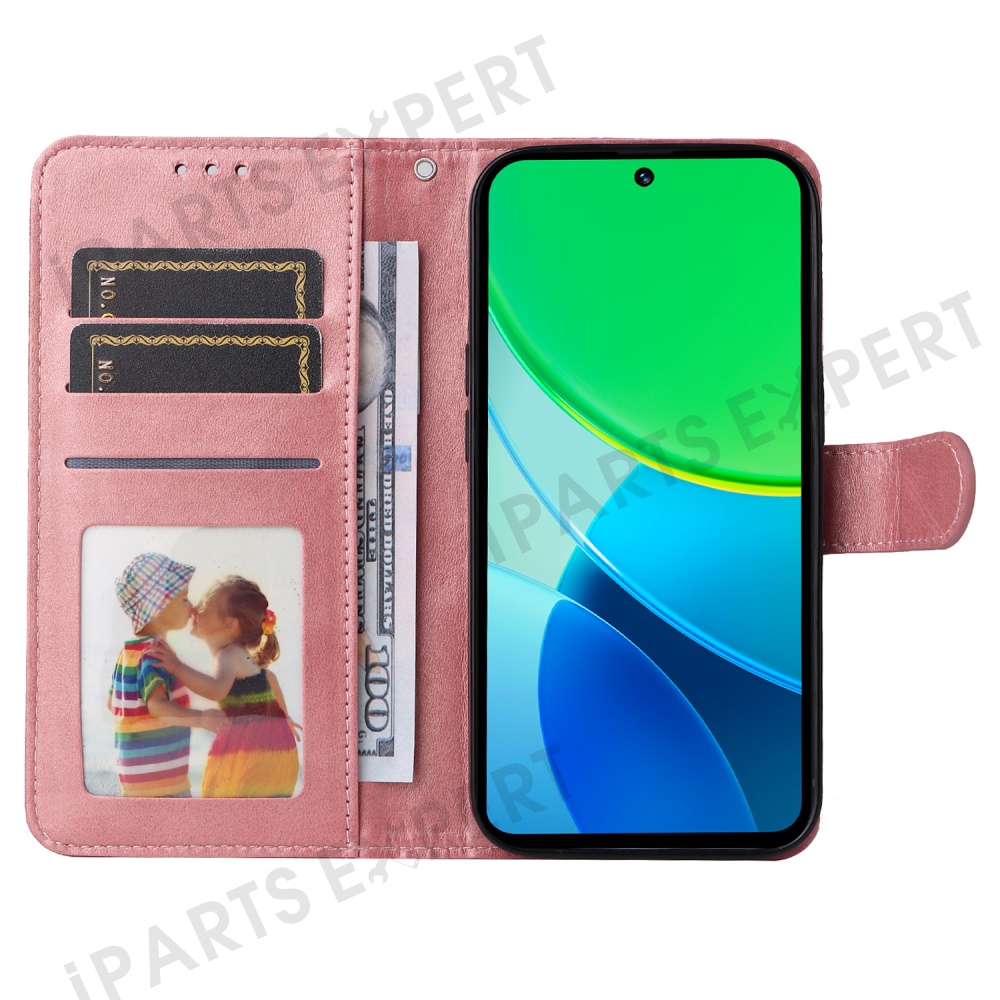 For vivo Y29 5G / Y19s 4G Case Wallet PU Leather Folio Flip Phone Cover - Pink