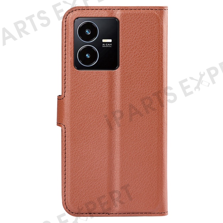 For vivo Y22s 4G Litchi Texture PU Leather + TPU Full Protection Case Wallet Stand Phone Cover - Brown