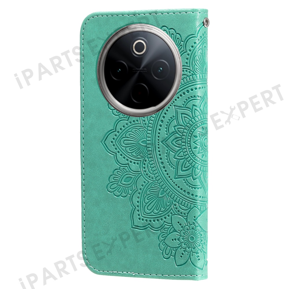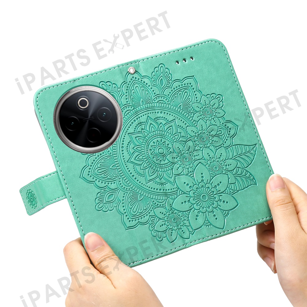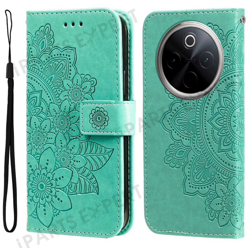 For vivo Y300 Pro 5G Case Floral Pattern PU Leather Wallet Stand Phone Cover - Green