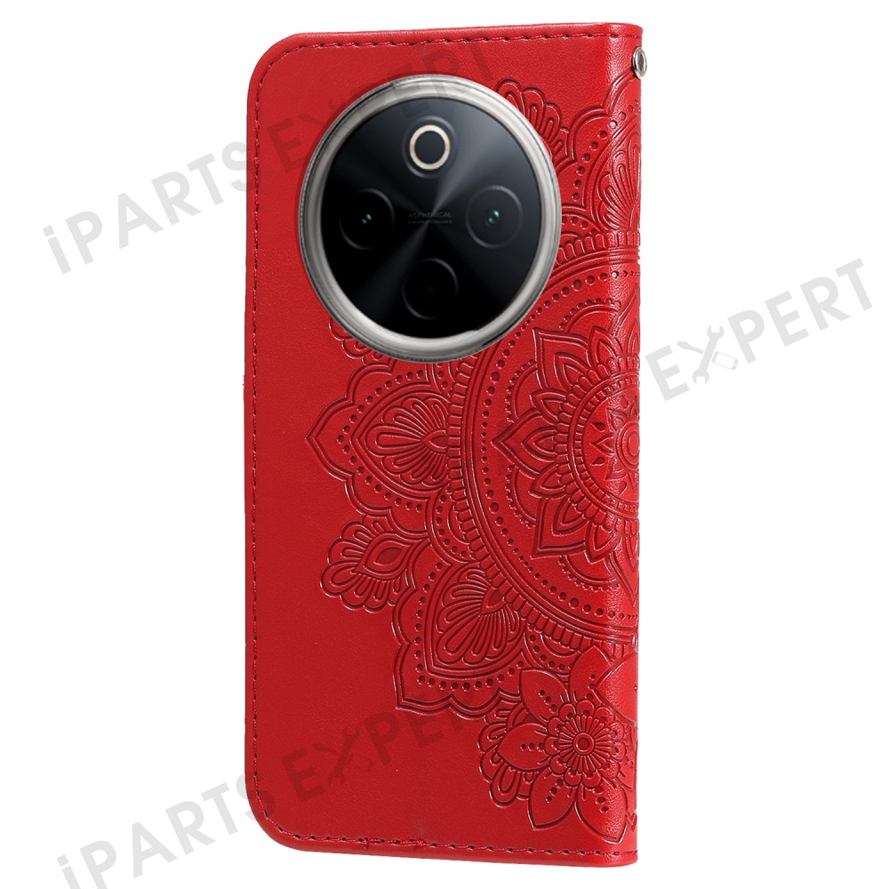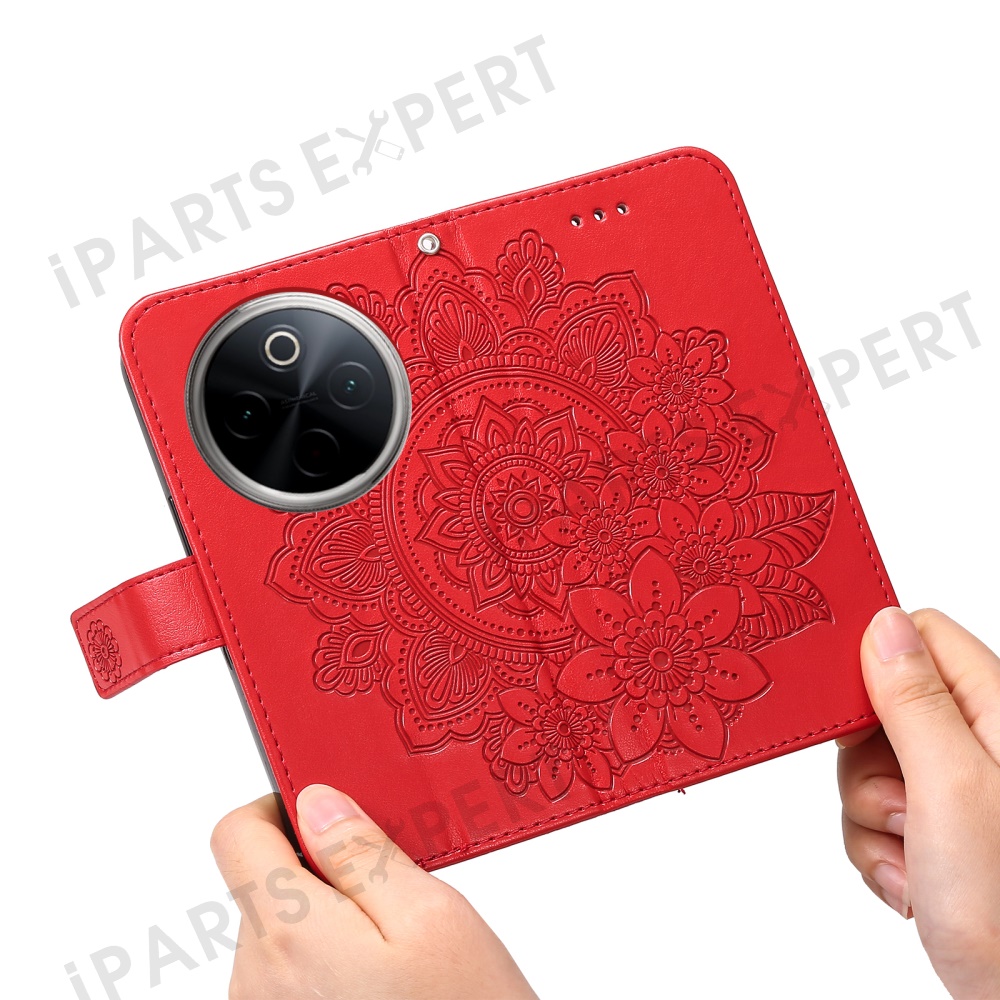 For vivo Y300 Pro 5G Case Floral Pattern PU Leather Wallet Stand Phone Cover - Red
