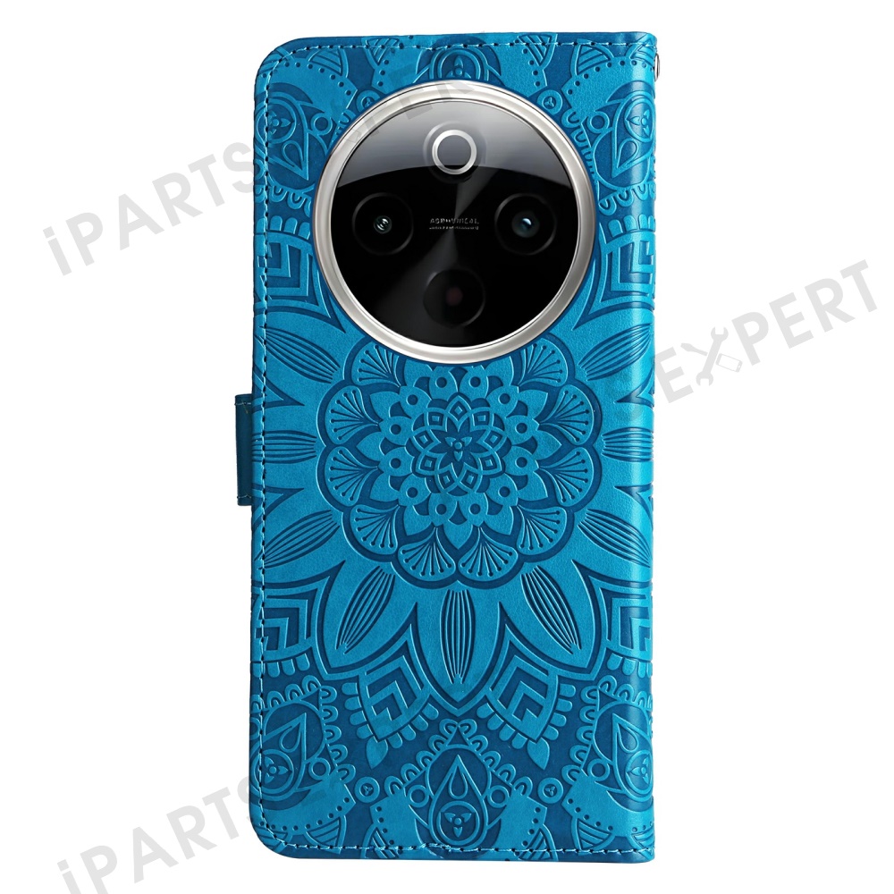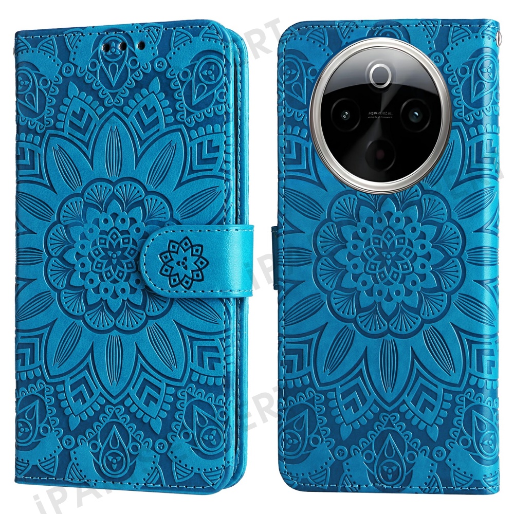 For vivo Y300 Pro 5G Case Sunflower Imprint Leather Wallet Phone Cover - Blue