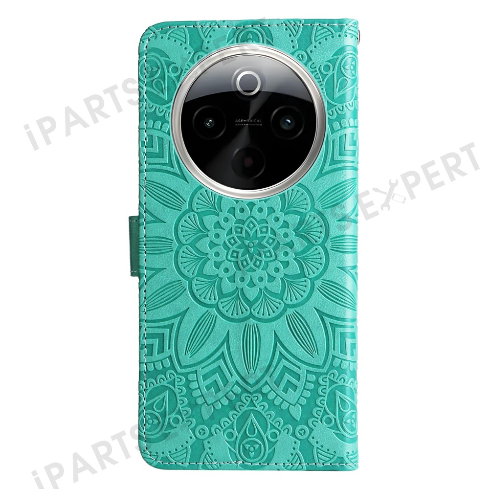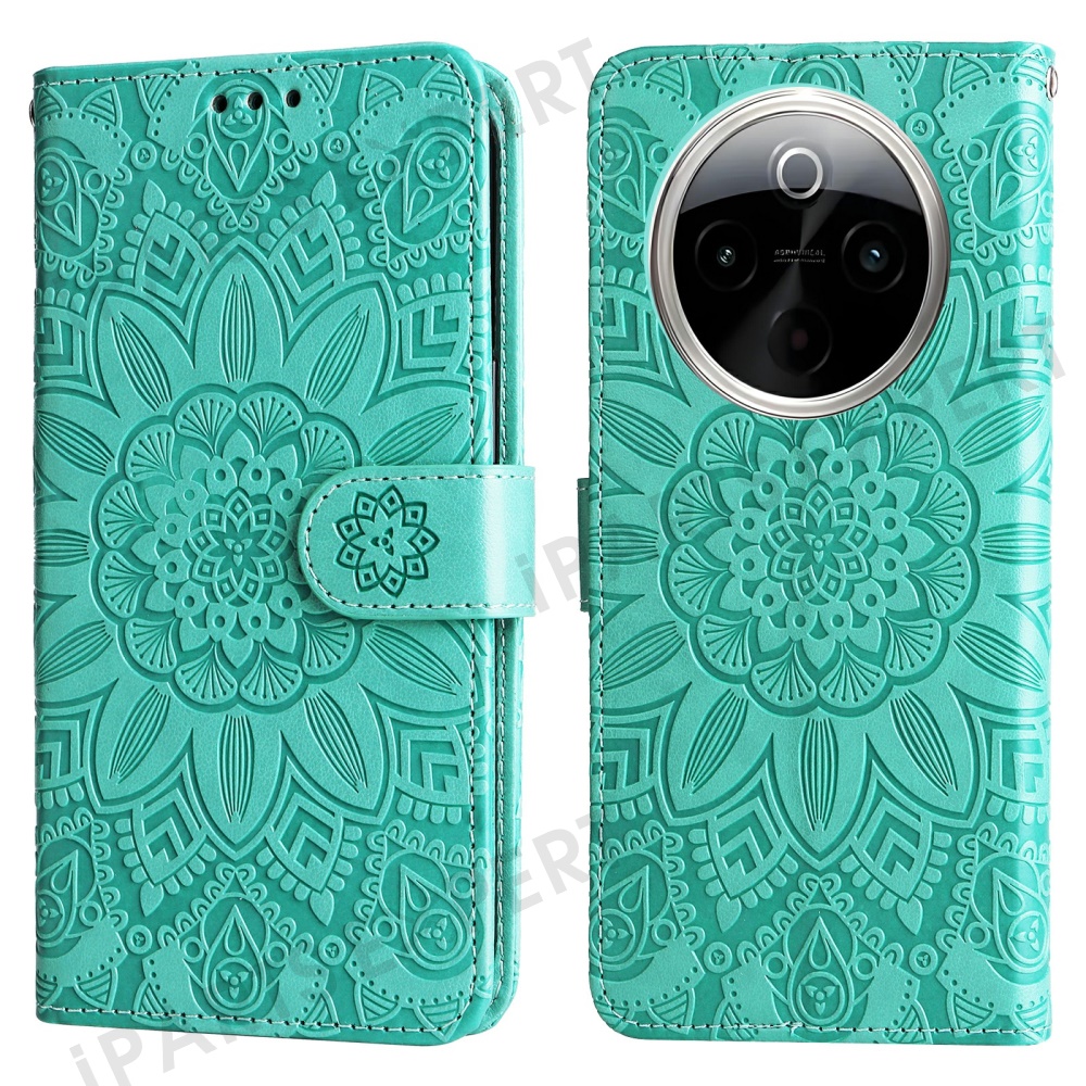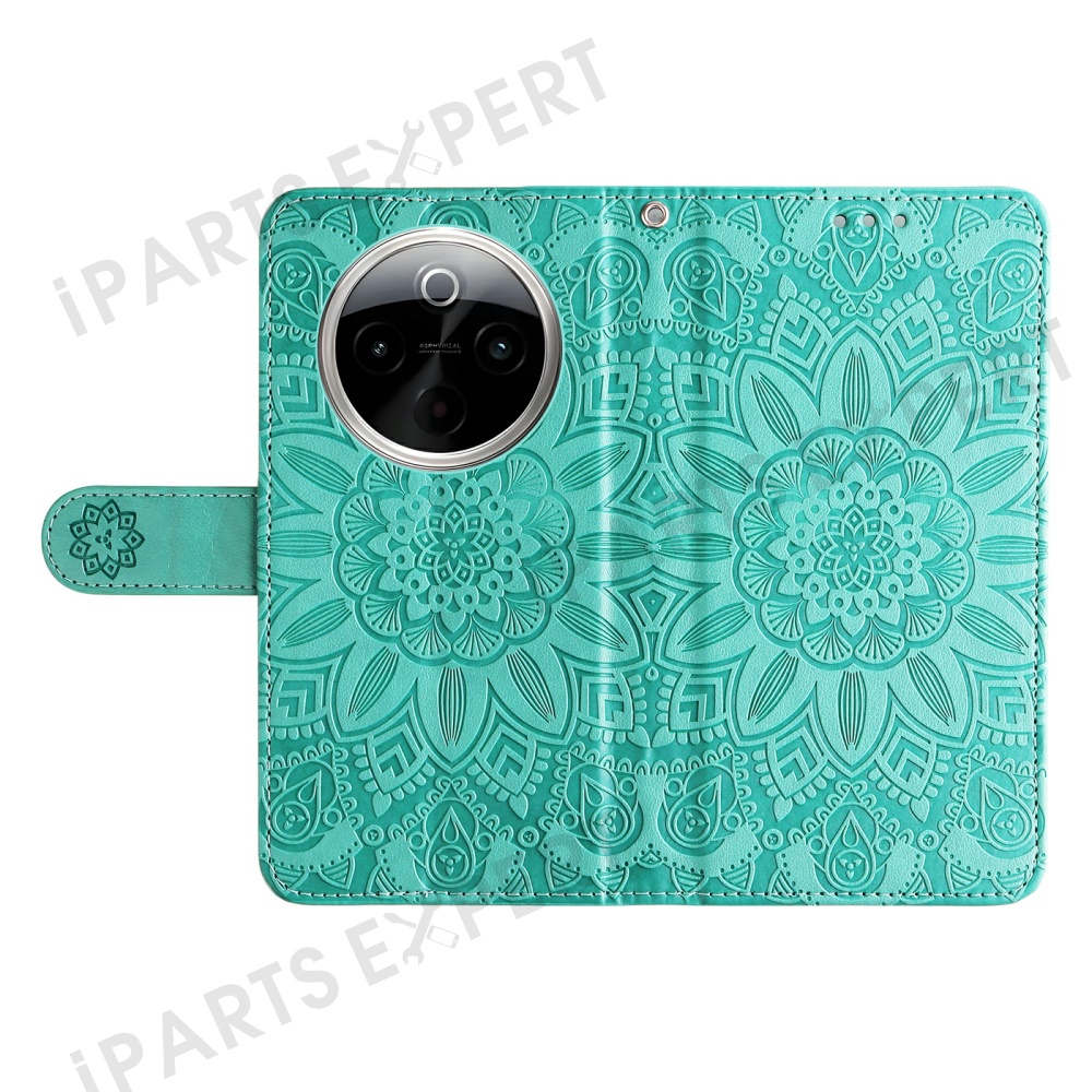 For vivo Y300 Pro 5G Case Sunflower Imprint Leather Wallet Phone Cover - Green