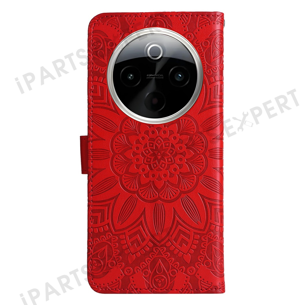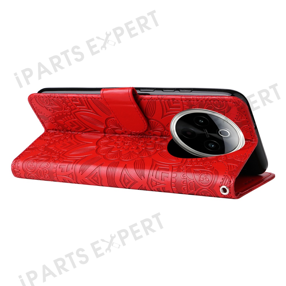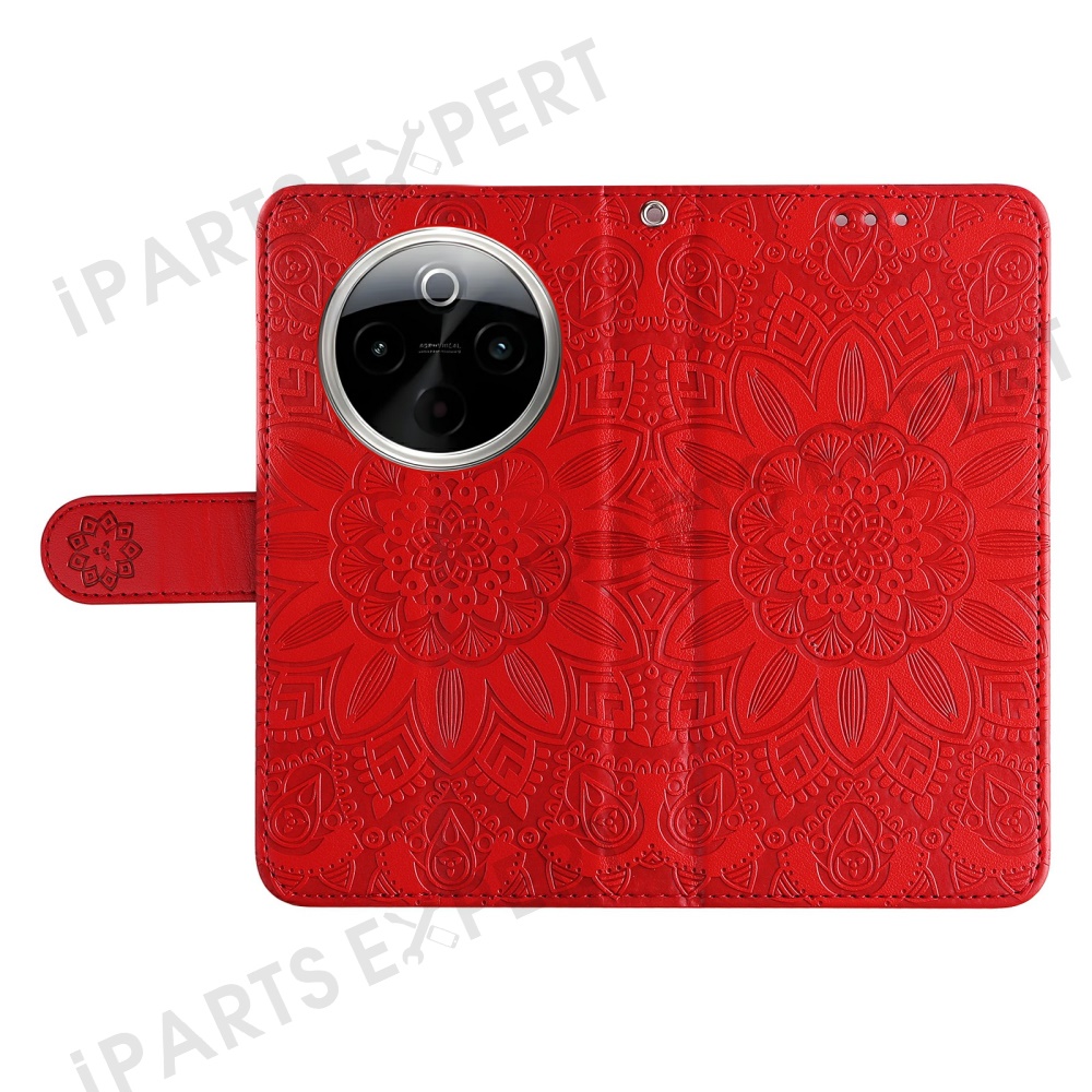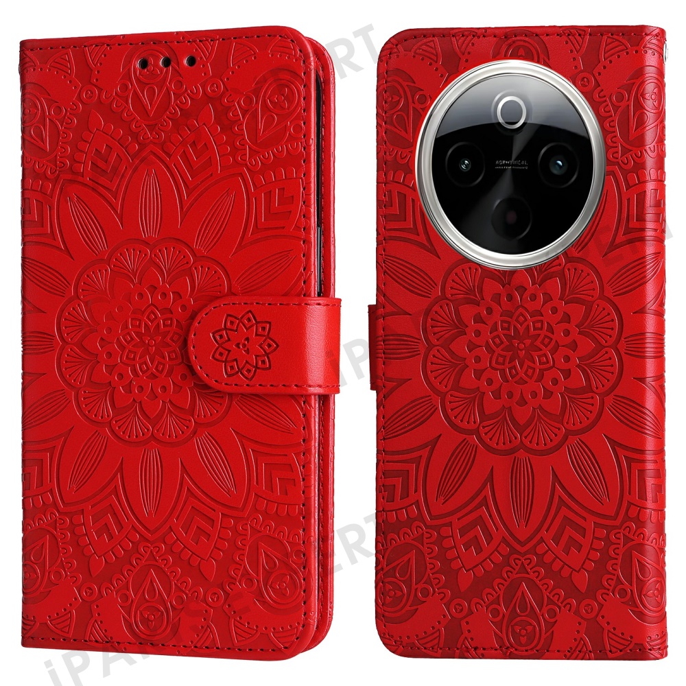 For vivo Y300 Pro 5G Case Sunflower Imprint Leather Wallet Phone Cover - Red