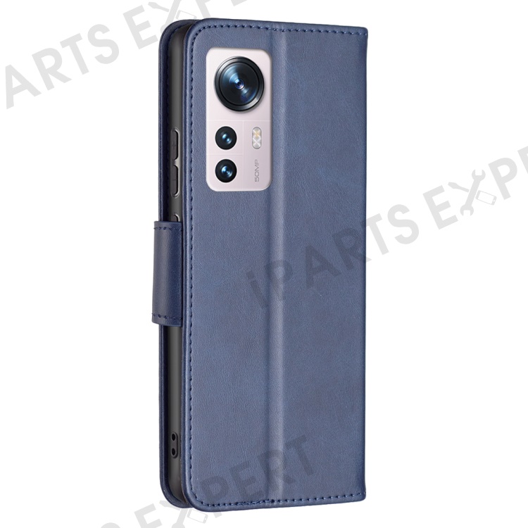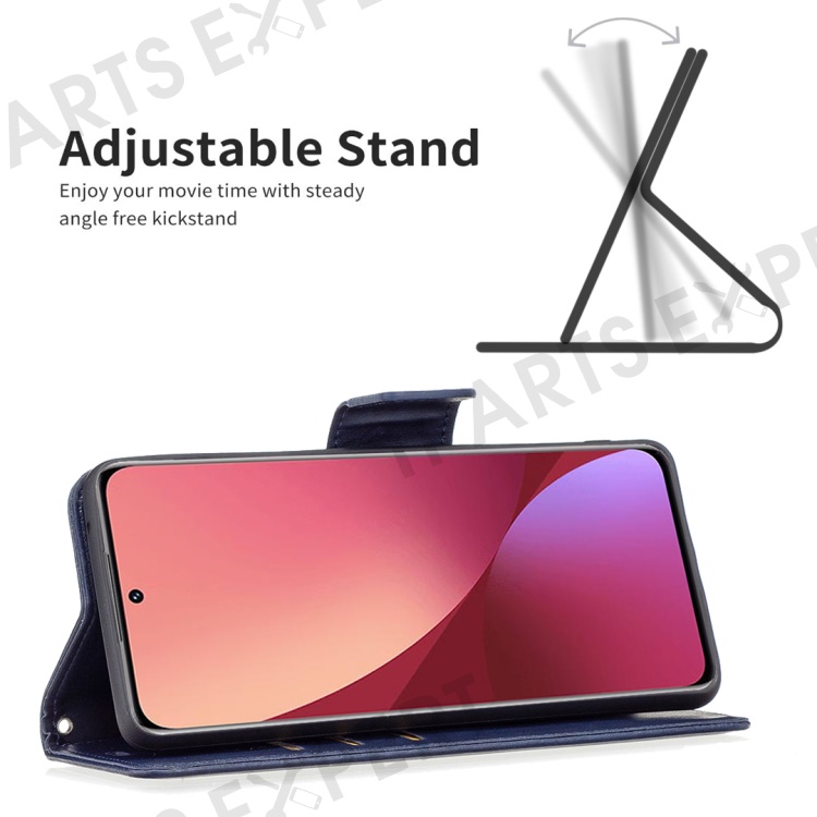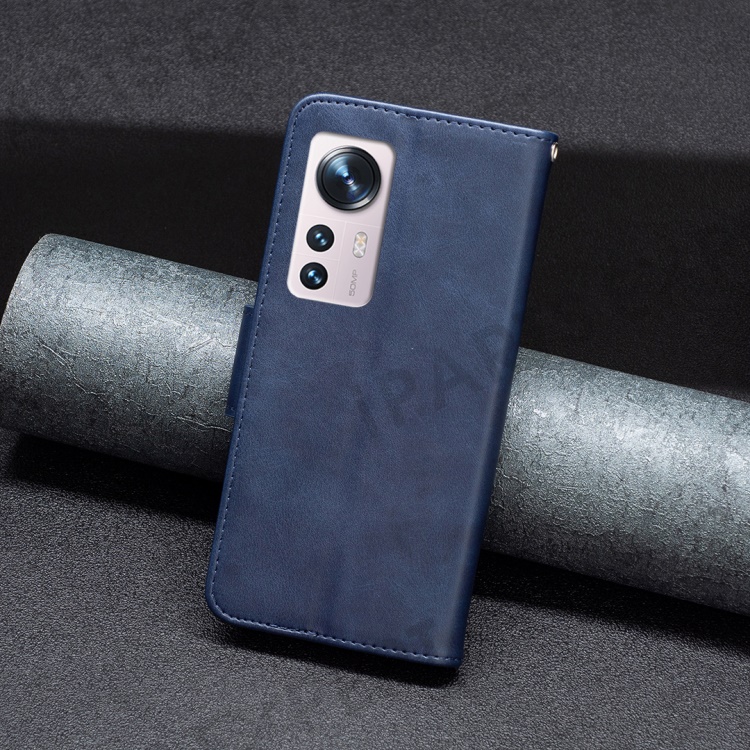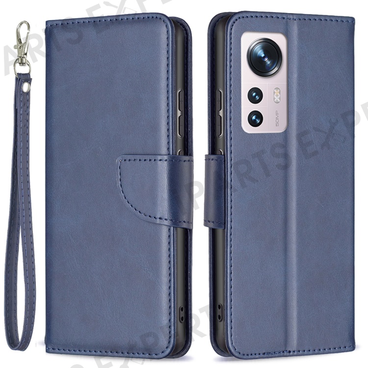 For Xiaomi 12 5G/12X 5G/12S 5G Textured Solid Color PU Leather Folio Flip Cover Stand Magnetic Phone Case with Strap - Blue