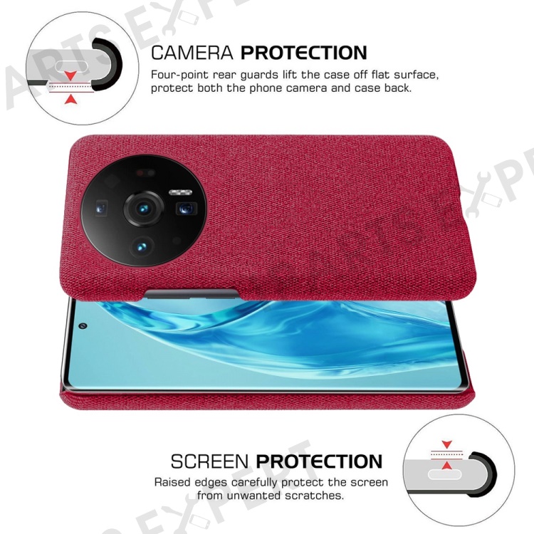 For Xiaomi 12S Ultra 5G Anti-shock Phone Case Solid Color Cloth Fabric Well-protected Mobile Phone Cover - Red