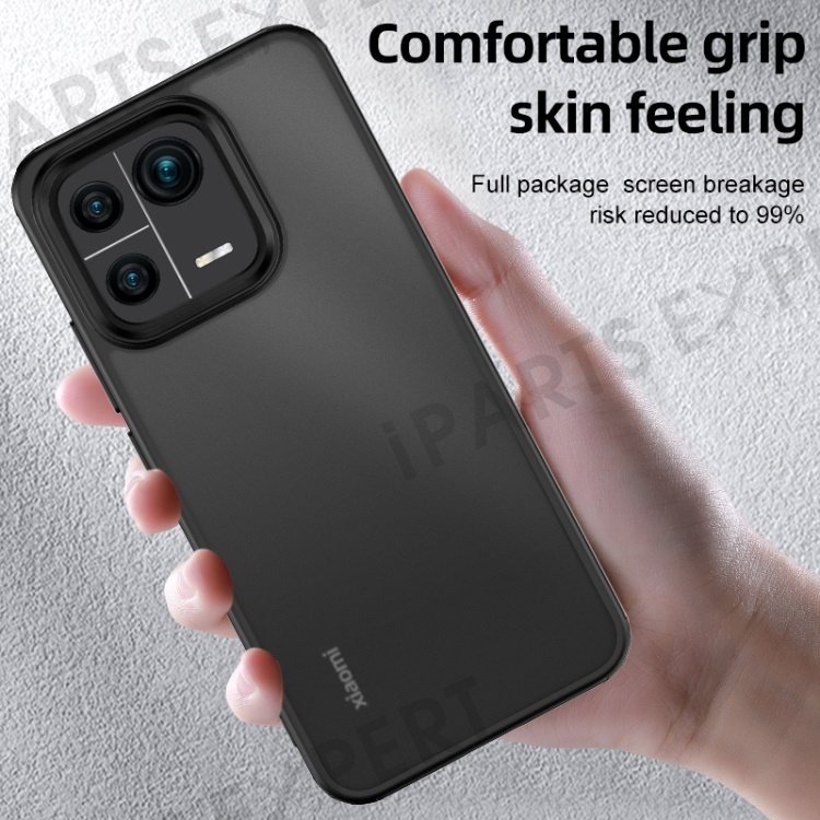 For Xiaomi 13 Clear Hard PC Non-Slip Soft TPU Frame Cover PC Corner Airbags Shock Absorption Phone Case - Matte Black