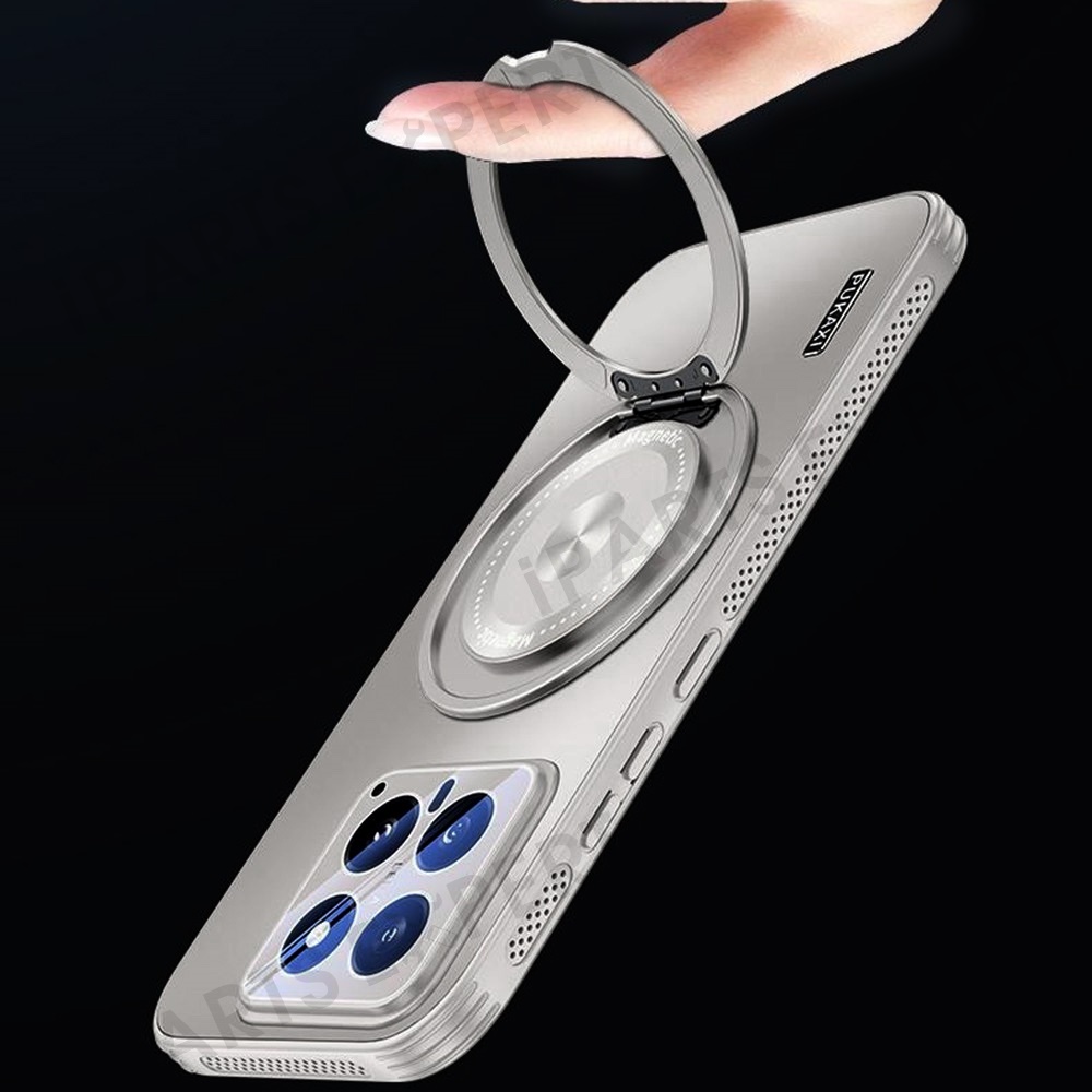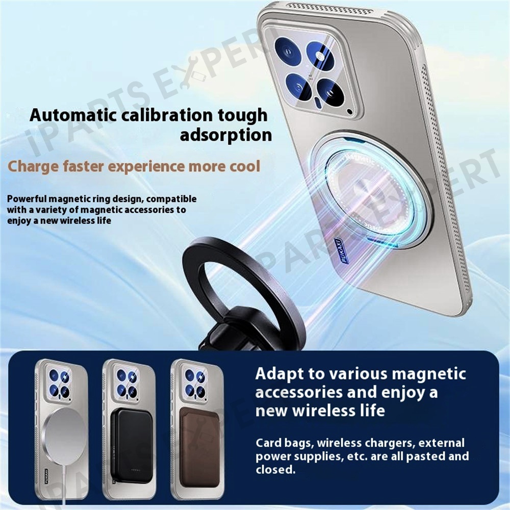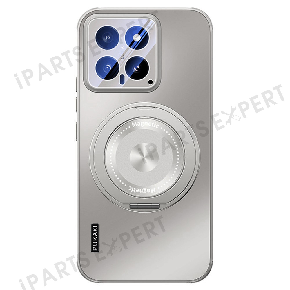 For Xiaomi 14 Magnetic Case Kickstand TPU PC Heat Dissipation Phone Cover - Grey