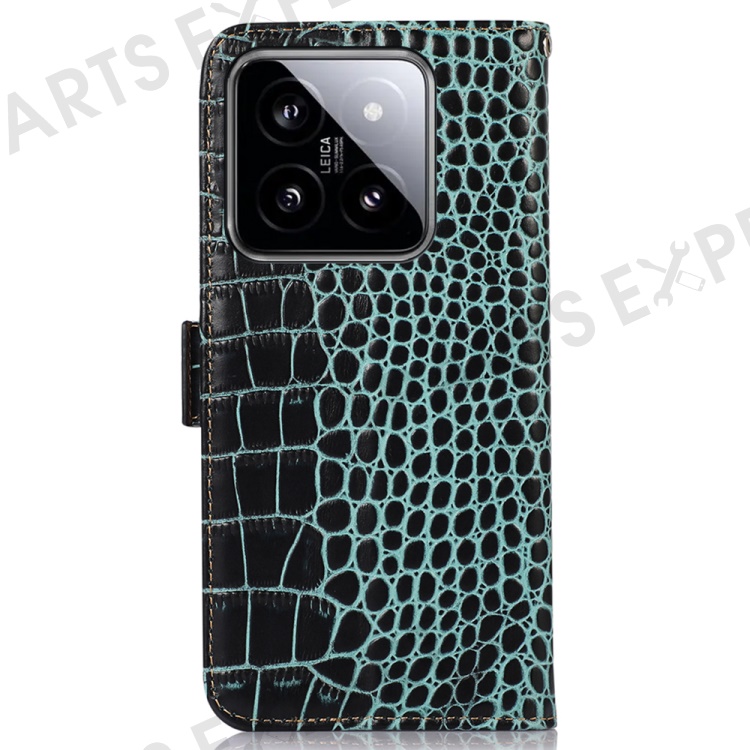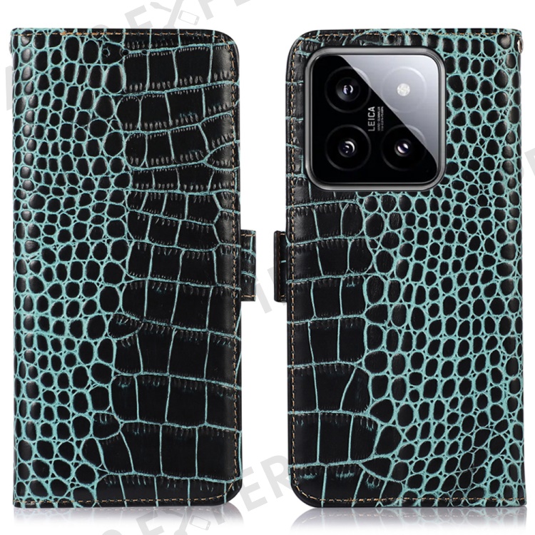 For Xiaomi 14 Case RFID Blocking Genuine Cow Leather Phone Cover - Green