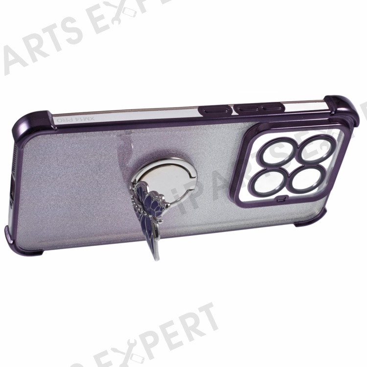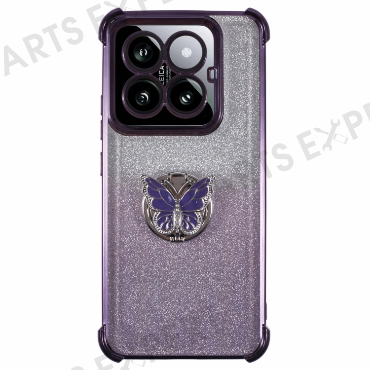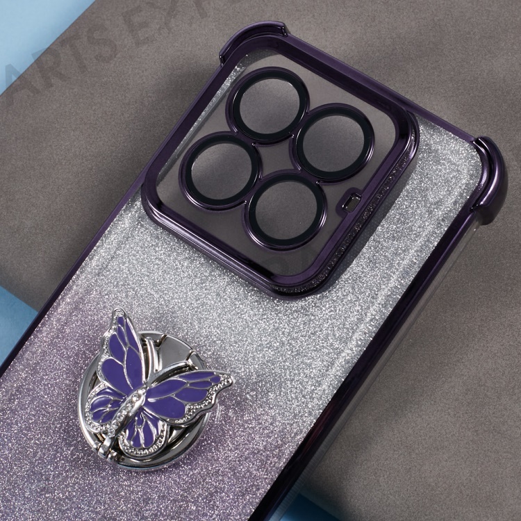 For Xiaomi 14 Pro Case Butterfly Kickstand Glitter TPU Shockproof Phone Cover - Purple