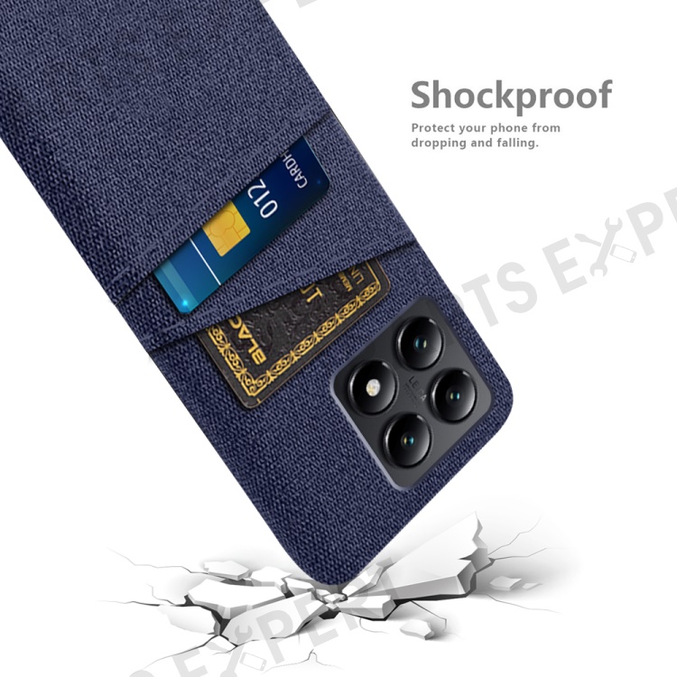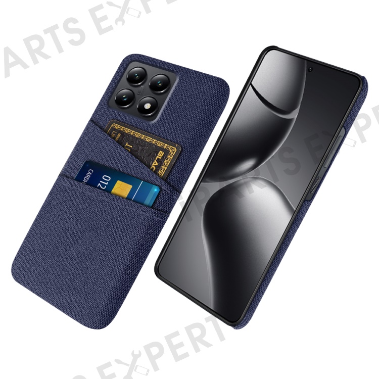 For Xiaomi 14T Case Cloth + Hard PC Phone Cover with Dual Card Slots - Blue